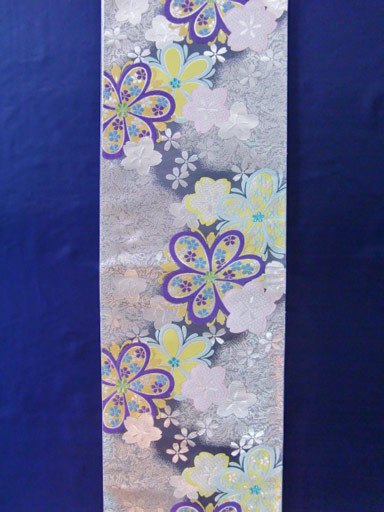 ◆ シルバー地に、可愛い花柄の袋帯です。