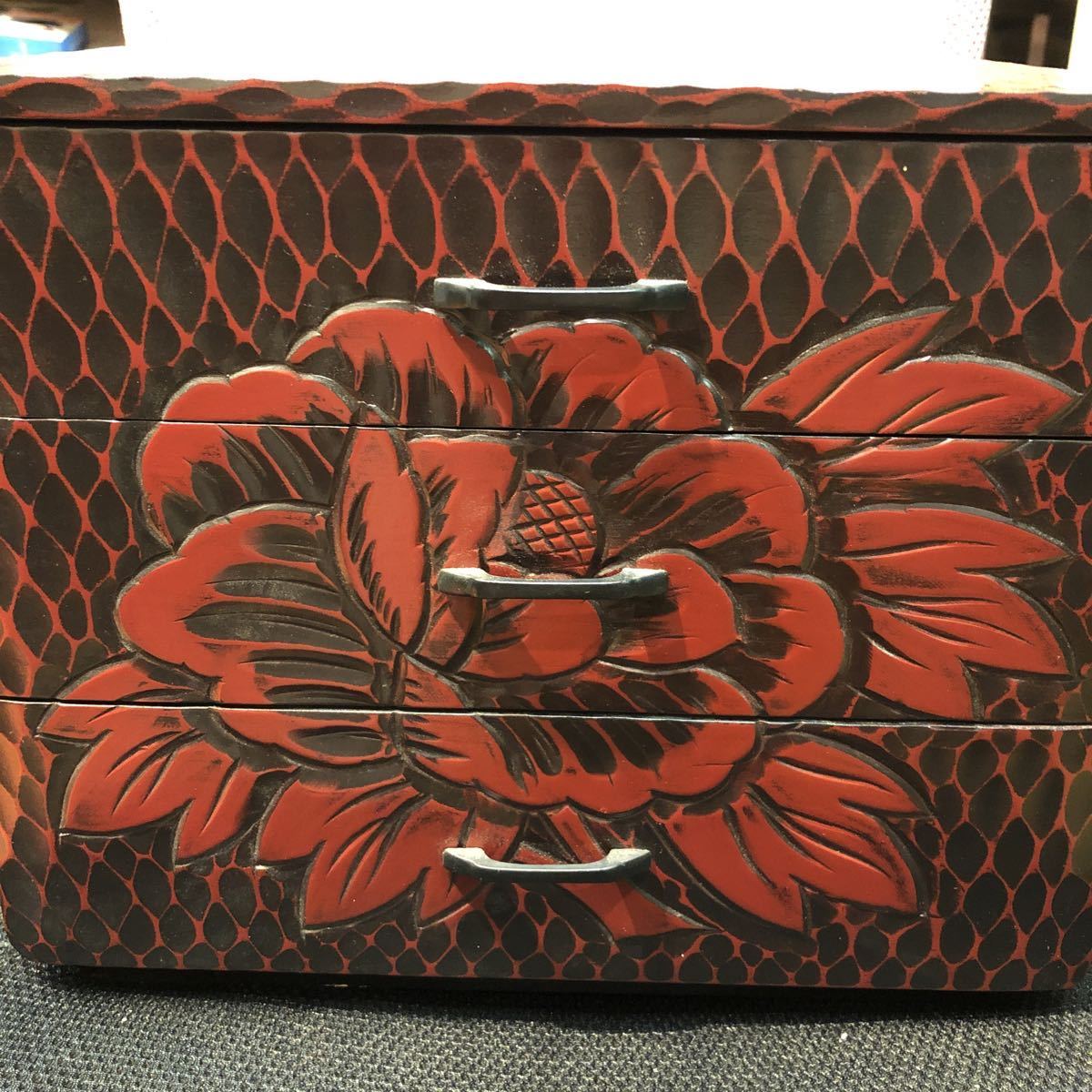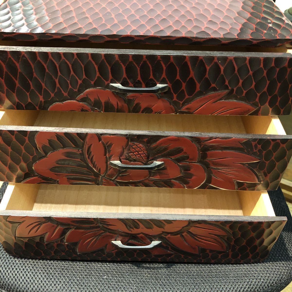 鎌倉彫 木製 三段引き出し箪笥 小物入れ 収納 古道具