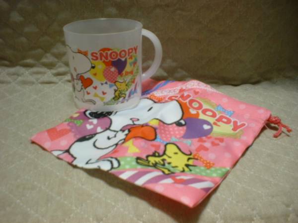 ★ スヌーピー コップ & コップ袋 新品 巾着 弁当 h ★