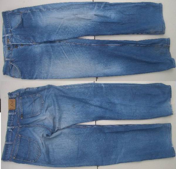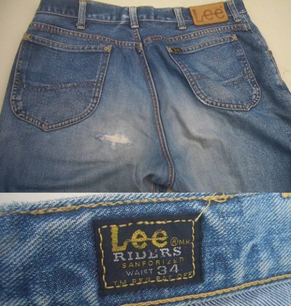 Leeライダース 日本製 Buttonモデルです。サイズはウエスト43、股下82、わたり31cm約です。表記はW34 L35 です。通常使用品で汚れ傷スレ色あせ破れありますが美品です。現状渡しになります。