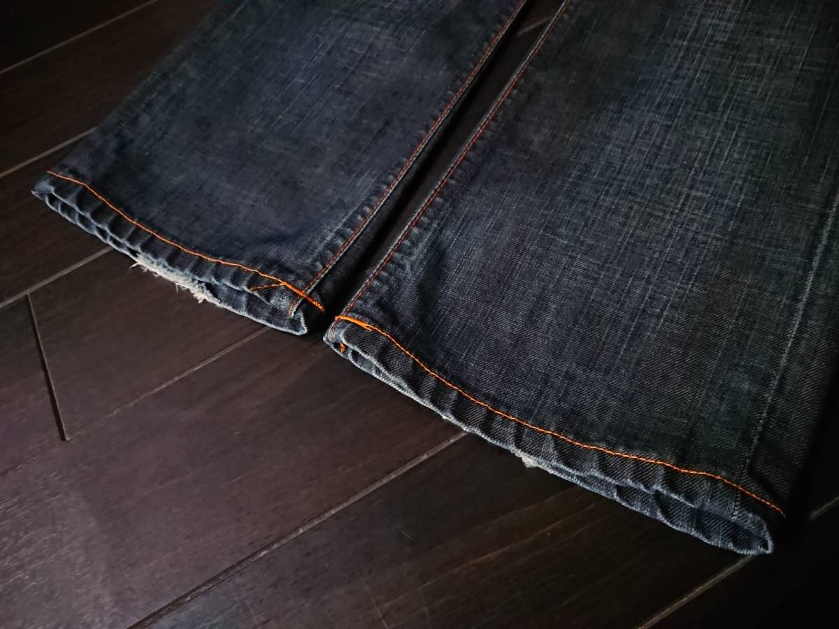 高級感溢れる、丁寧なウォッシュ&ダメージ加工が施された、色落ちの美しい濃いインディゴブルー♪