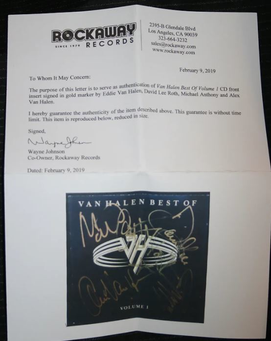 永遠のギターヒーローEVHとメンバー全員の直筆サイン(証明書付き!)が書かれたCDジャケット&☆
