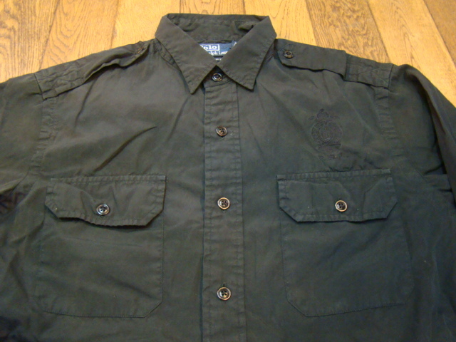 美品 90s Polo Ralph Lauren ボタンダウンシャツ S ブラック ポロ ラルフローレン ロゴ 刺繍 長袖 コットンシャツ