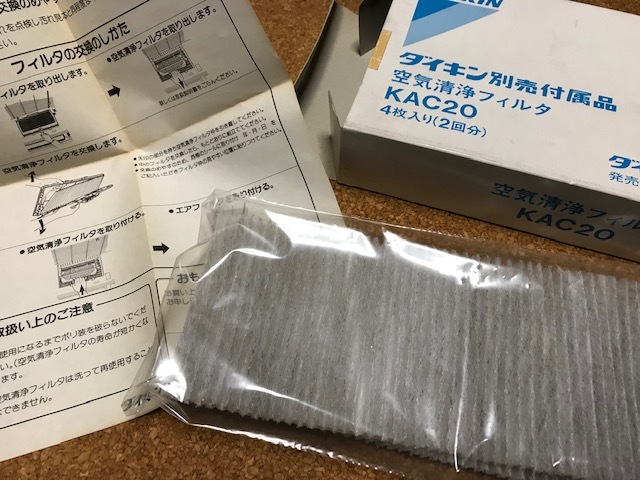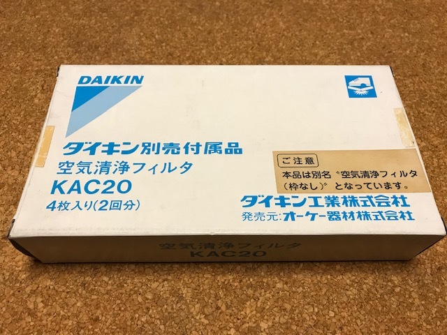 ダイキン 空気清浄フィルタ 枠なし KAC20 4枚入り(2回分) PM2.5 細菌 肺炎 ウイルス 花粉 黄砂 未使用 送料無料 底値