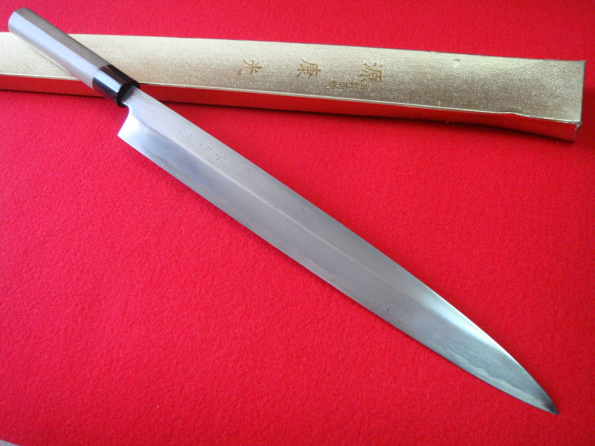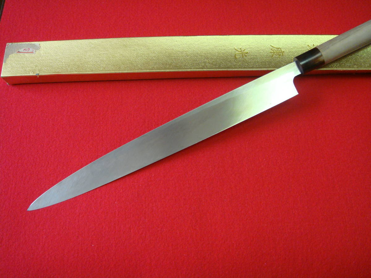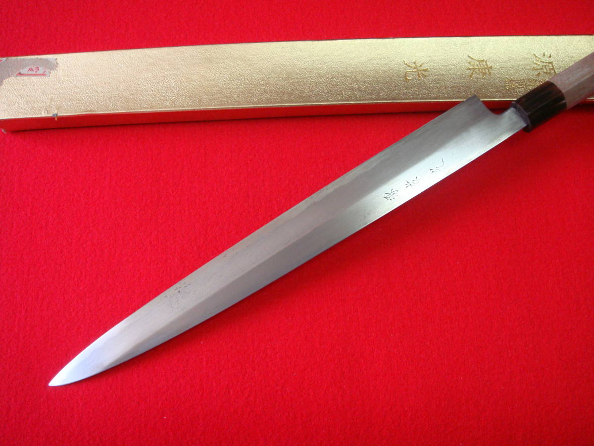 【源康光】刺身包丁 刃渡34.8㎝ 全長52㎝ 峰厚5.2㎜ 箱付 ※中古品 全国一律送料1100円