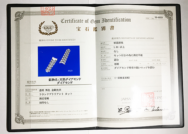 鑑別書にはNatural diamond (天然ダイヤ)と表記あります。