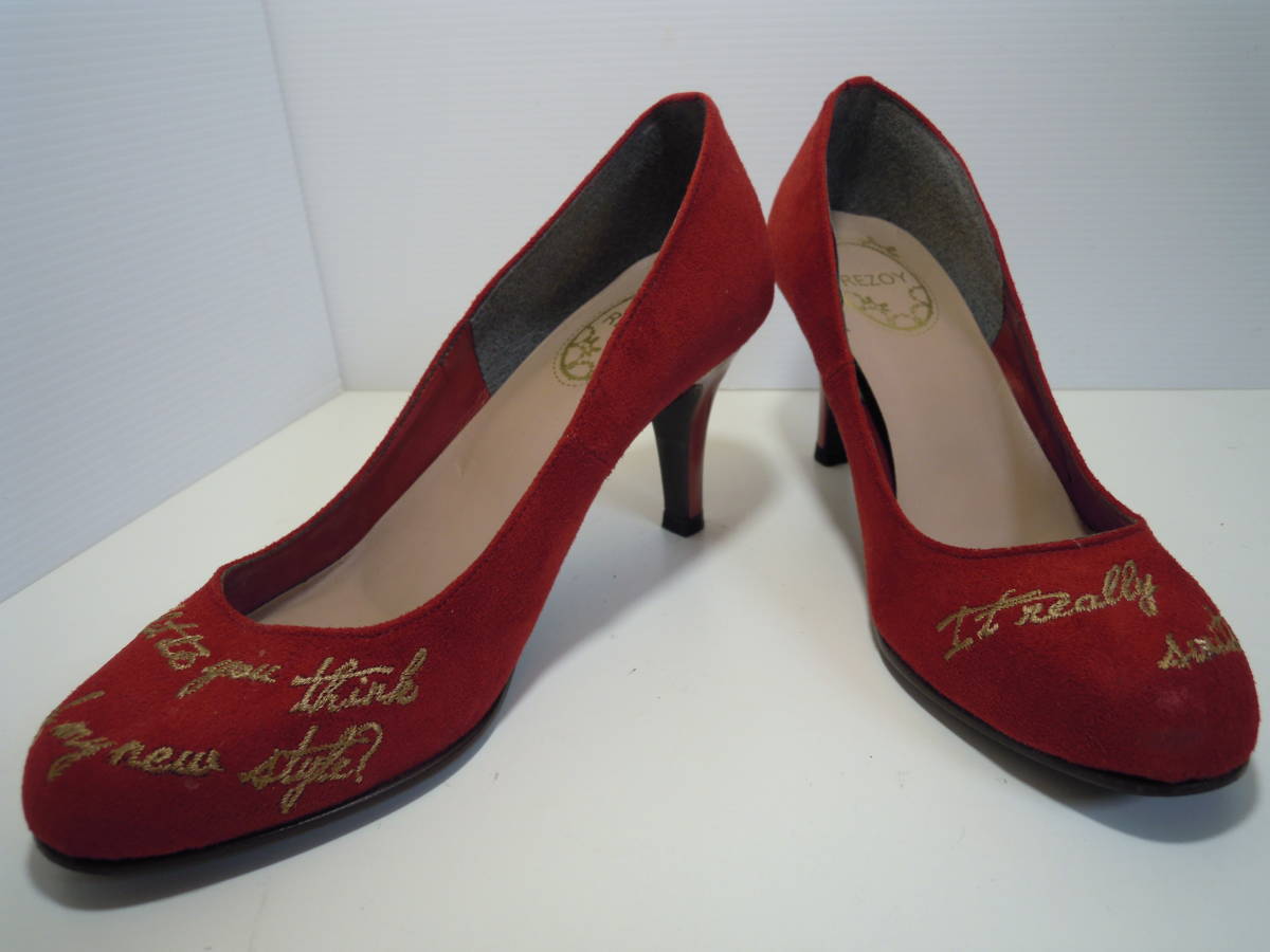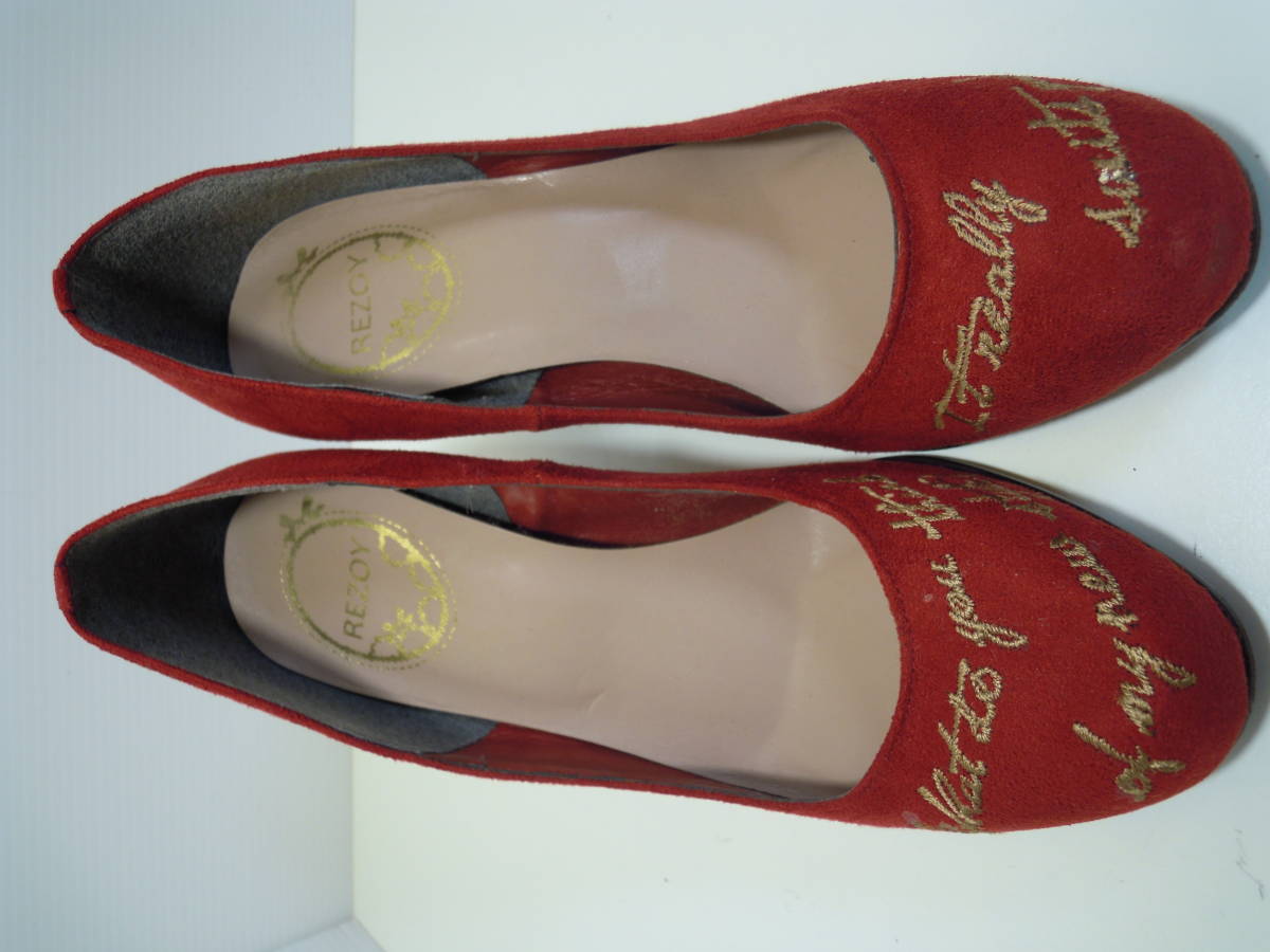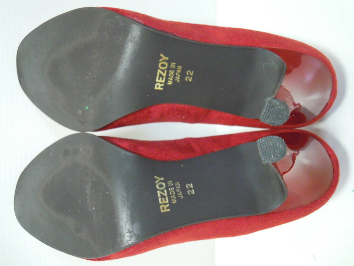 【ブランド・形態】 REZOY リゾイ 英字刺繍入り ラウンドトゥパンプス サイズ22.0cm 日本製です。 【カラー】 レッド/ゴールドです。 掲載の実物写真はPC環境や光の加減により実物と色合いが若干異なる場合があります。 【特徴】 REZOY リゾイの洗練されたシルエットが魅力のパンプスです。 アッパーはスエードレザーに、ゴールドの英字が刺繍されており、なかなか無いデザインです。 知的な雰囲気ただようエレガントなデザインは、オンオフ問わず幅広いシーンに活躍してくれます。 程よい高さのヒールは、思ったより安定感があって歩きやすく、履き心地、歩きやすさも良好です。 スカートやパンツ、どんなボトムとのコーディネートも合わせやすいです。 ヒール高さ:約7.0cm、最大幅:約7.8cm 【状態】 少々使用感はございますが、特に目立つダメージは見受けられず、使用に問題無いと思われます。 アッパーは比較的にきれいです。トップリフトは少しすり減りがあります。 内張りが一部がヒビが入りがれています。 保管箱はありません。 【材質】 アッパー:レザー アウトソール:合成底 【サイズ】 22.0cm、 質量:325g | |||