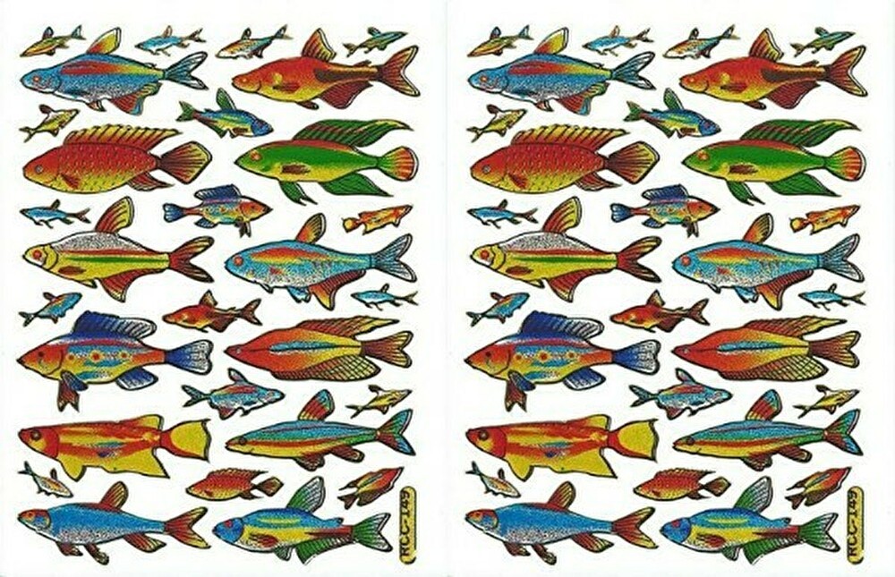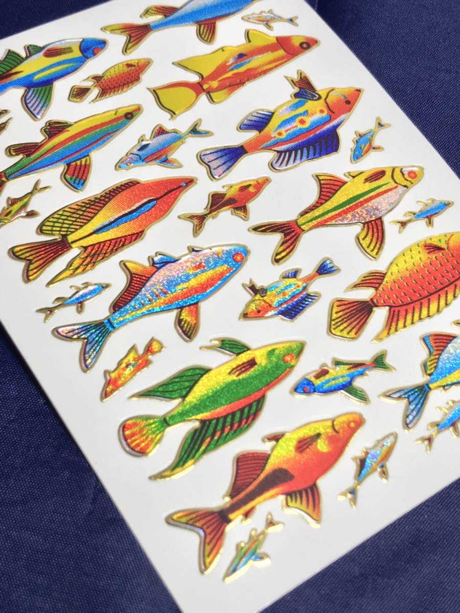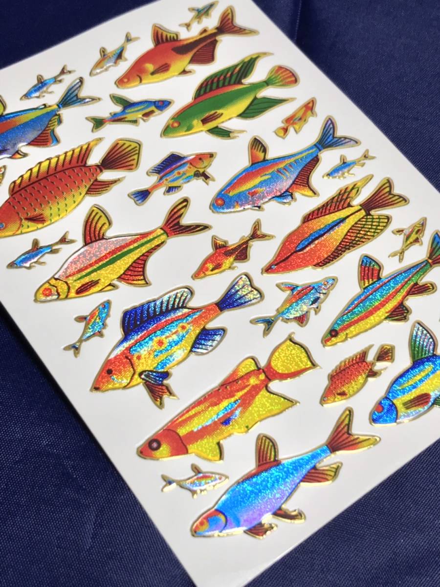 /防水 ラメ加工 おさかな ステッカー 2点 セット スマホ 手帳 タブレット ごほうび 熱帯魚 グッピー 観賞用 予定表 カレンダー TSS-657X2