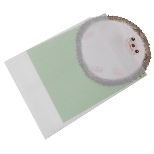 アニマルのダイカット便箋10枚と透け感がかわいいトレーシングペーパー封筒5枚とカラーペーパー5枚がセットになっています。