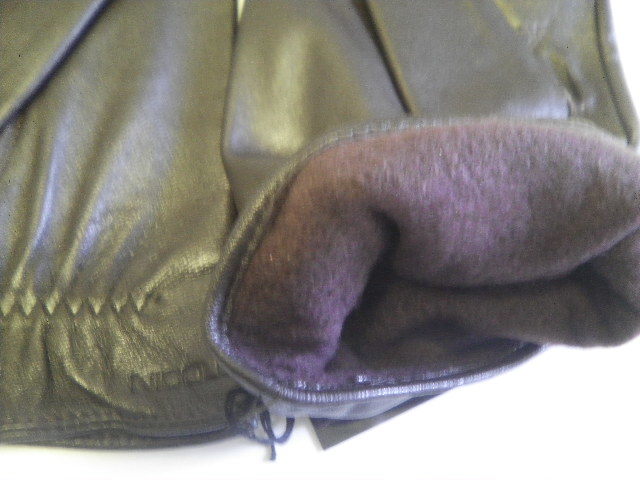 商品 情報 | ☆新品 ☆ロゴマーク入りです!!(モニター環境により色が写真と少し異なる場合があります) ☆カラー ダークブラウン ☆素材 羊革 (柔らかなレザーです) ☆裏地 ポリエステル made in china ☆平置きサイズ *手首~中指の先 約 23、5~24cm *手首の幅 約 10、7cm *中指の長さ 約 8、6cm ※参考程度に (測る場所により多少の誤差が生じます) ☆表記サイズ М 24cm (手囲いサイズ М 23~24cm L 25~26cm LL 27cm~)☆ブランド NICOLE ニコル (正規ライセンス商品) |