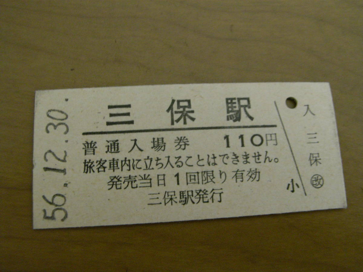 清水港線 三保駅 普通入場券 110円 昭和56年12月30日