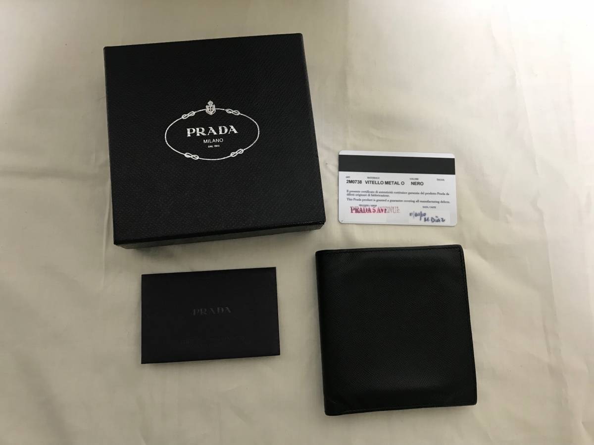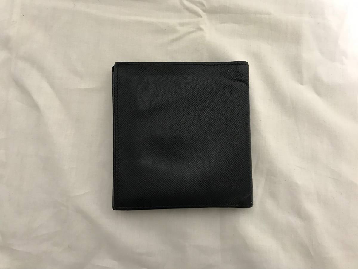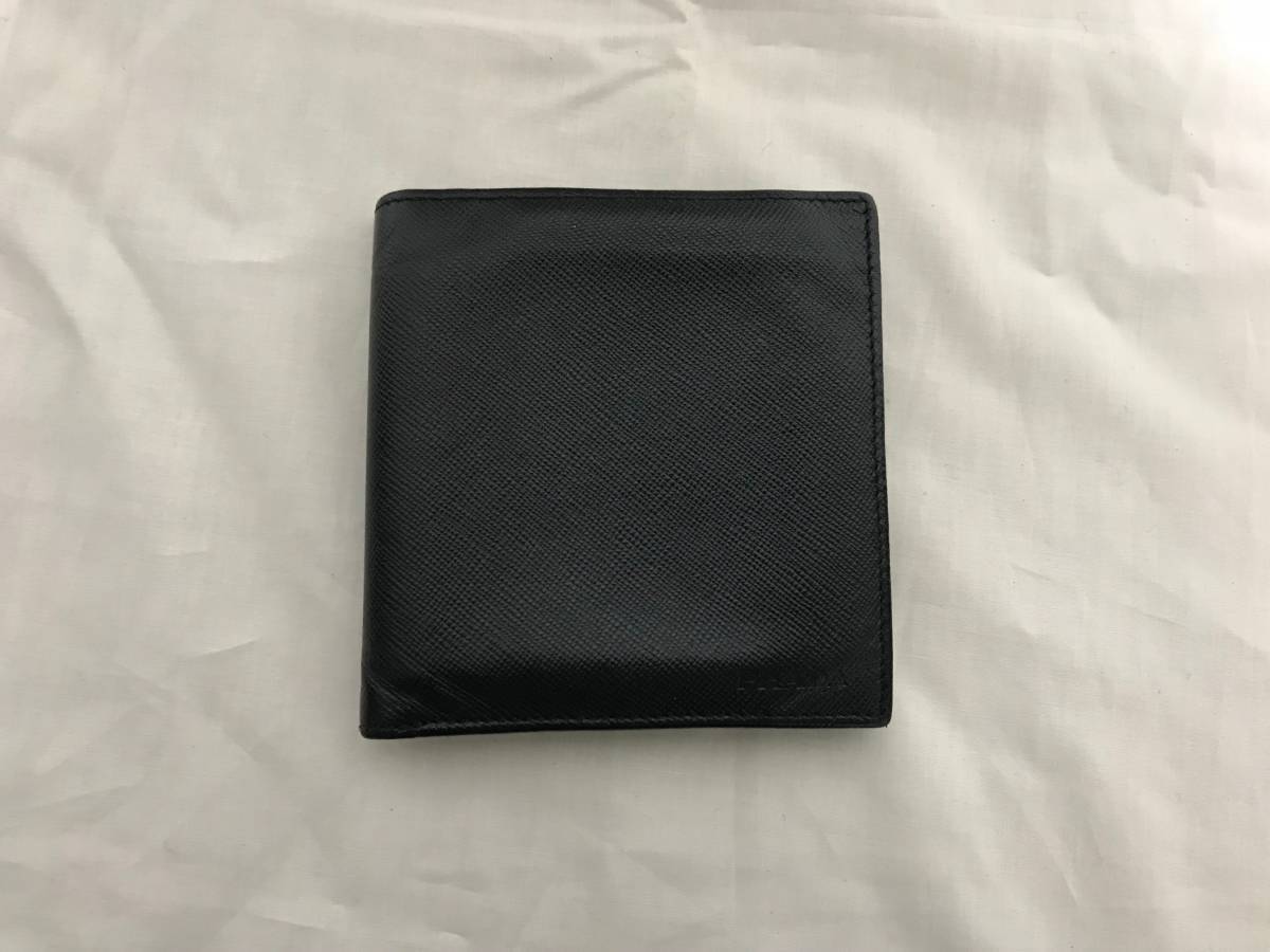 美品本物プラダPRADA二つ折り本革サフィアーノレザー二つ折り財布サイフ札入れ黒ブラックメンズレディース旅行トラベルビジネススーツ