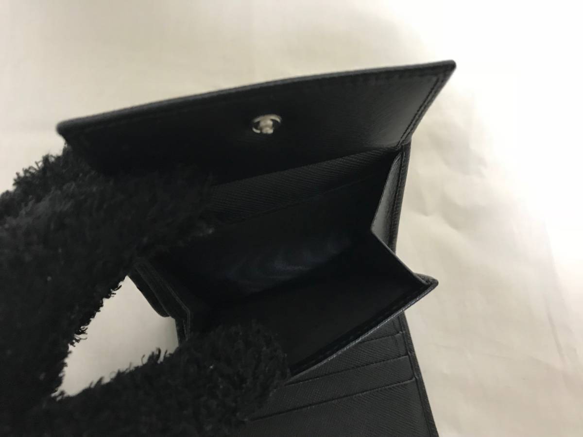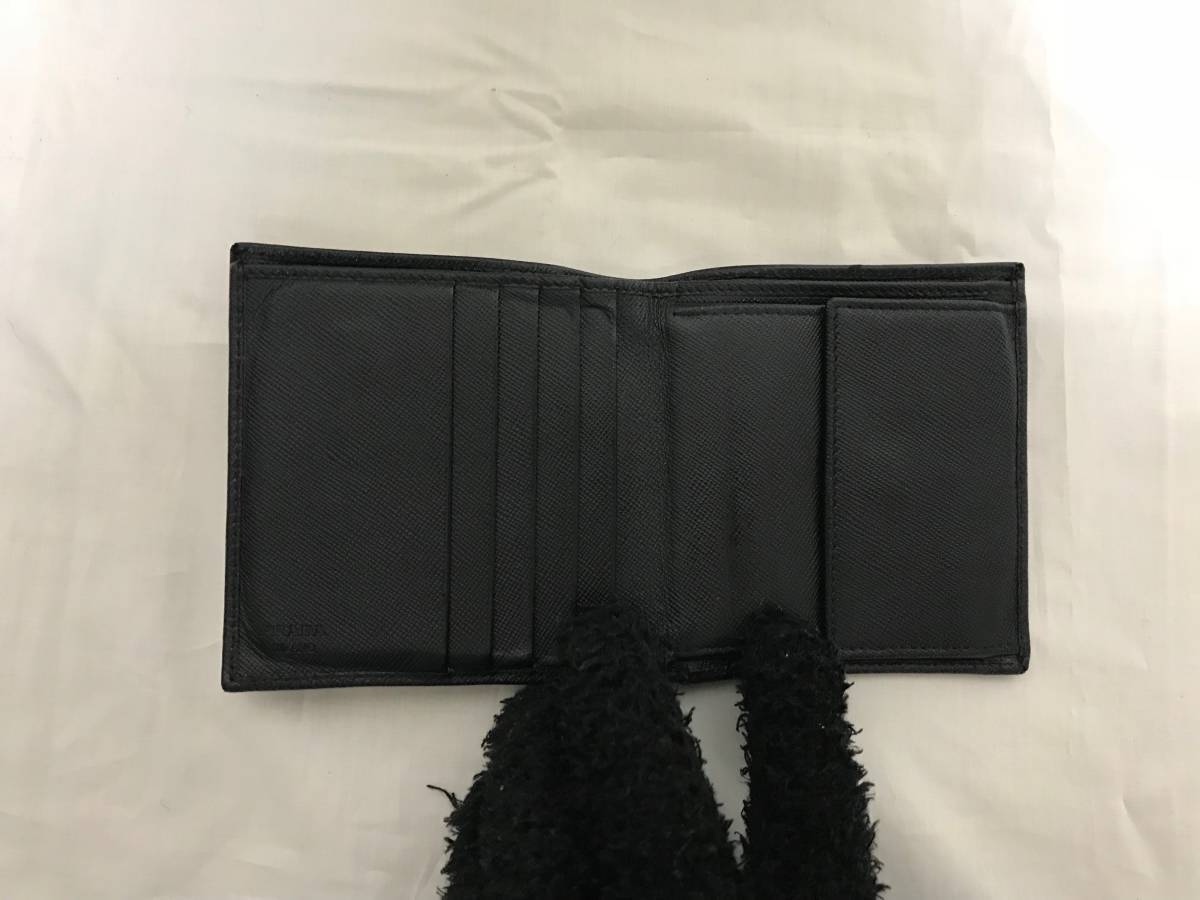 商品名:美品本物プラダPRADA二つ折り本革サフィアーノレザー二つ折り財布サイフ札入れ黒ブラックメンズレディース旅行トラベル