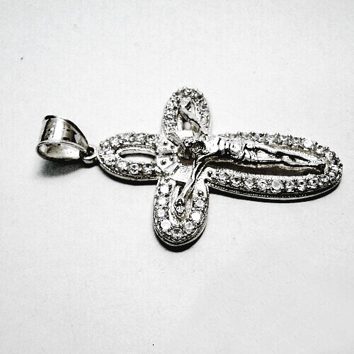 | 説明 | hiphopやB系スタイルの ジルコニアが埋め込まれた、 迫力のキリスト・クロスのシルバー925製のトップです。 とにかくキラキラ感が凄いです。 クロス部分には46石のカットジルコニアが, キリストの頭上に3石のスクエアカットジルコニアが はめこんでありますので輝きが凄いです。 バチカン部分がかなり大きいので かなりの大きさのチェーンも通ると思います。 シルバー925製でこれだけの物を作ると 金額も凄くなるのでなかなか国内では あまり出回らない迫力のトップと思います。 シルバーフェチにはたまらない仕上がりになってます。 ※クリックポスト便をお選びいただくと送料無料になります。 ※試着のチェーンは付属しません。 (専用のチェーンをセットお買い上げの時は 割引いたしますので、その時はお声かけお願いします。) |