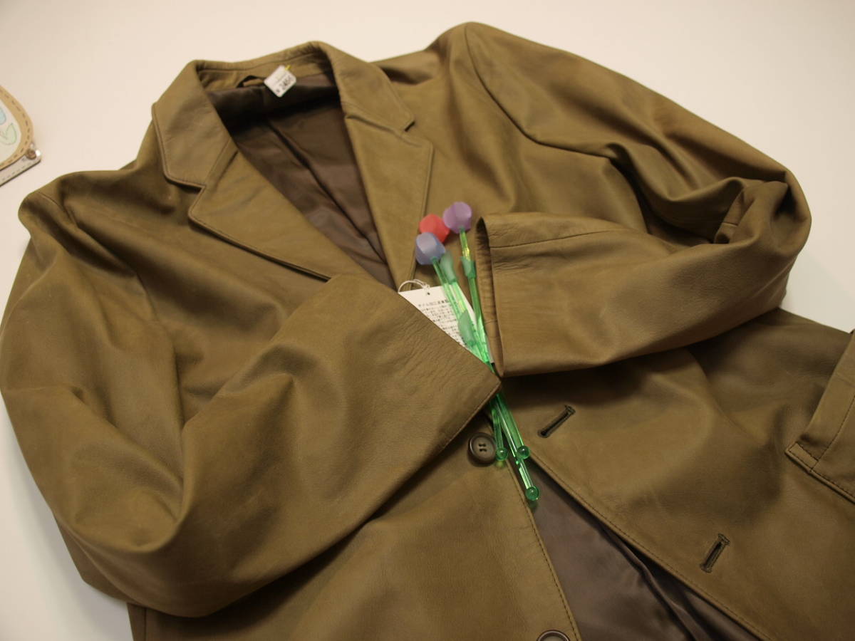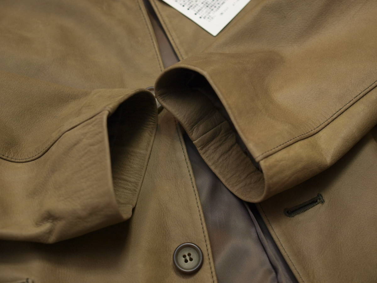 商品の補足説明(主観的な内容も含む) 牛革にオイル加工という特殊な加工を施してあり、牛革特有のゴワゴワ感はほとんどなく、しっとりしていてしなやかです。(革の厚さは、標準的な牛革くらいだと思います。) 未使用品で汚れはありませんが、小さくて深めの傷が数個あり、爪で引っ掻いたくらいの表面的な薄い傷?が多めです。ご入札の前に、かならず、ヤフーボックスの追加写真もご確認ください。 左の袖などに、色ムラがあります。 いずれも着用には問題ないレベルだと思いますが、新古ですので神経質なかたや完璧を求める方は念のためご入札をお控えください。 |