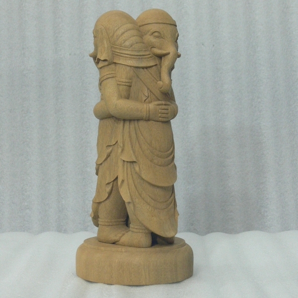 大日如来の権化身ともいわれる天部の一人。 財運と福運をもたらしてくれる神とされており、日本各地の寺院で祀られております。 像容としてはは象頭人身の単身像と、 立像で抱擁している象頭人身の双身像の2つの姿の形像がよく見られます。 ※こちらの商品は後者の双身像です。 |