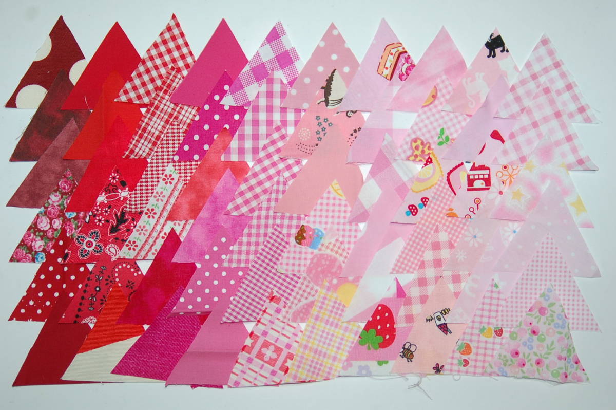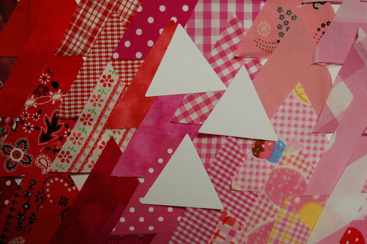 パッチワーク用正三角形出来上がりサイズ45㎜に裁断してます。