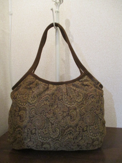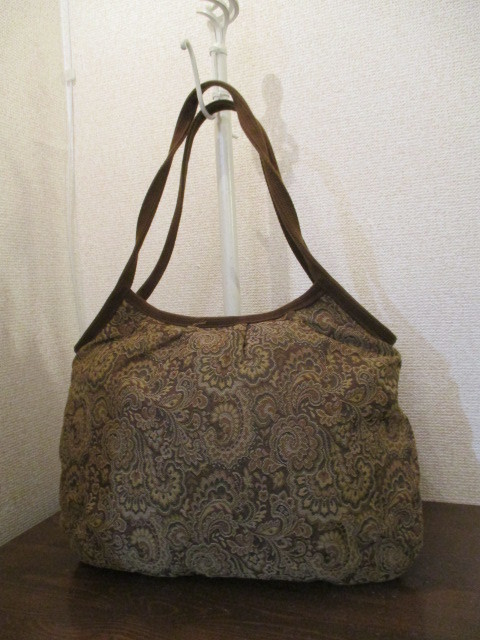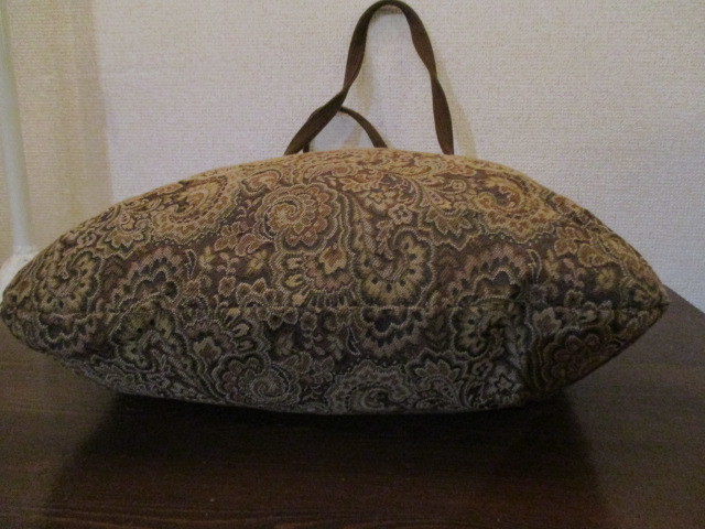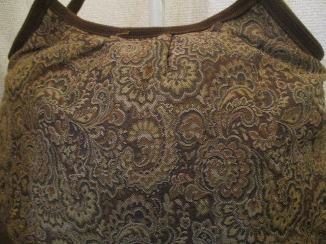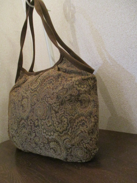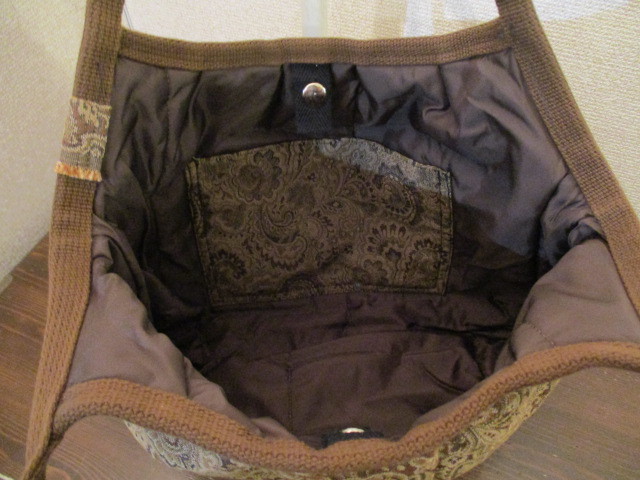 商品紹介 | 茶系のカラーでデザインされた花柄が可愛いです。 B4が入るぐらいのサイズです 肩掛けも可能です 内側は茶のポリエステル系素材で、少し中綿が入った感じです。 入り口は スナップボタン式になります 外ポケット なし 内ポケット 2つ折り財布サイズ1(チャック等なし) *レターパックは小さく折りたたんでの発送となります。 |