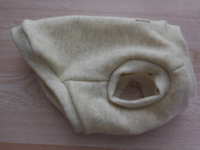 家庭用ミシンで作っているため、ニットの毛羽立ちがあります。