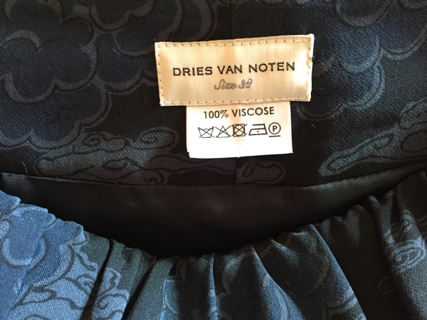 ドリスヴァンノッテンはベルギーのファッションブランド。近年のファッションに大きな影響を与えた「アントワープの6人」の一人。オリジナルの生地制作から始まり、色・刺繍・プリント・フォルムなどの要素を組み合わせて、独自の世界観を表現し、高い評価を得ています。こちらのスカートも、ビスコース素材のなめらかでさらりとした感触が心地よく、色落ち日焼けにも強い染色・プリントに最適の素材で、ドリスヴァンノッテン独特の美しい色合いが生かされています。腰に落として穿くシンプルに見えて美しいデザイン。使用感のない美品です。