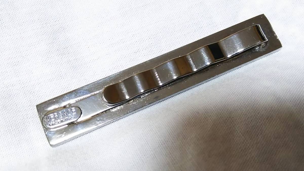 正規良レア ヴェルサーチVERSACE ゴシックエンブレムロゴネクタイピン ブラックエナメルタイピン クロームシルバーロングタイバー オールド