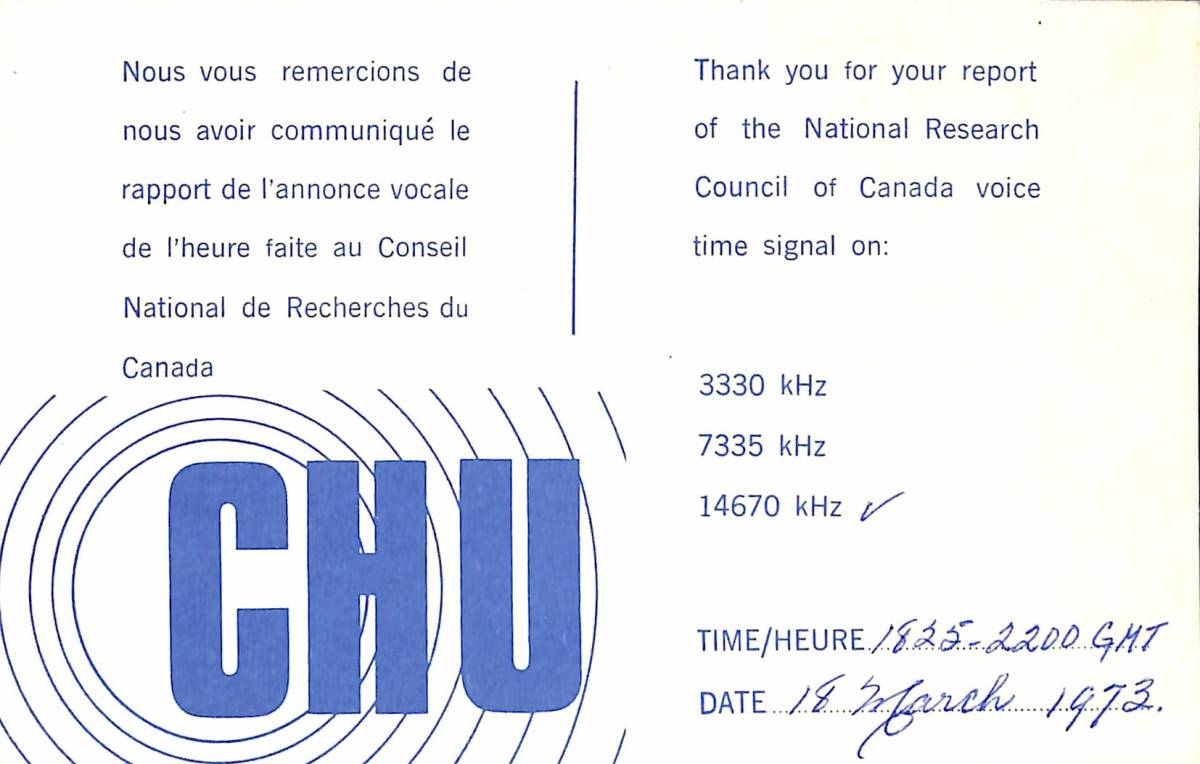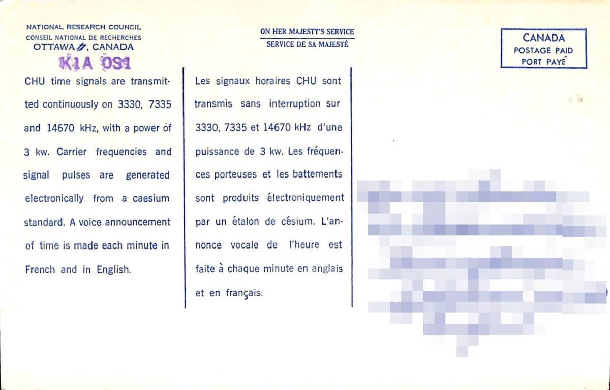 【商品名】・・・Radio Station CHU(★カナダ標準周波数報時局)のベリカード。 【コメント】・・・世界標準時を提案したサンドフォード・フレミングの母国です! 【国名・地名】・・・・カナダ★首都 オタワ。 【受信データ】・・・1973年3月18日★SW14670KHZを受信。 【記載事項】・・・受信データ・受信者の住所・氏名が記載。 【状態】・・・シワ、汚れ、シミ、焼け、色あせ等があります。 ■カードの状態は★画像を参考に判断して下さい。 ■当方、1枚のみ所有していますので即決で落札者様のコレクションになります! ■この機会にぜひこのベリカードを貴方のBCLコレクションに加えて下さい! | |