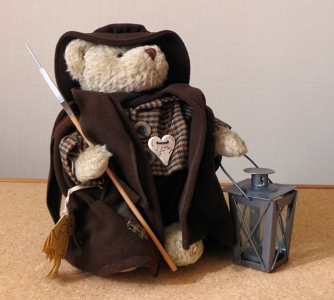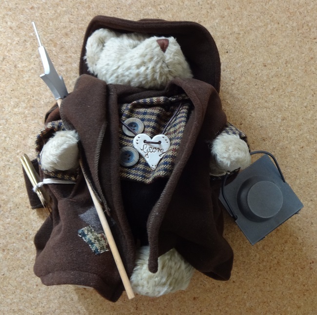 ドイツのローデンブルグ土産のテディベア、身長約33cmです。ずっと飾っていたものです。ここ数年はずうっとしまいっぱなしの状態です。