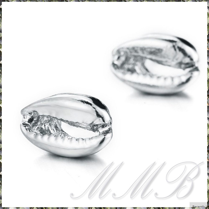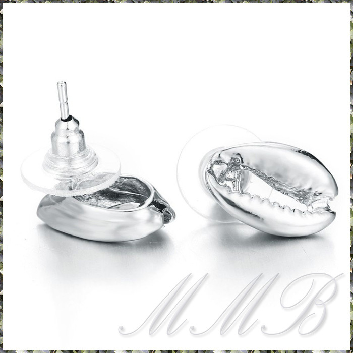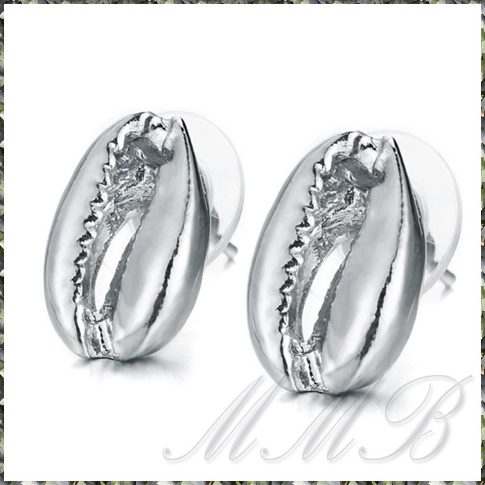 [EARRING] White Gold Plated Cypraea Shell Stud タカラガイ 貝殻 トロピカル シェル デザイン ホワイト ゴールド 14mm スタッド ピアス