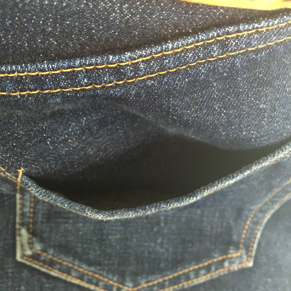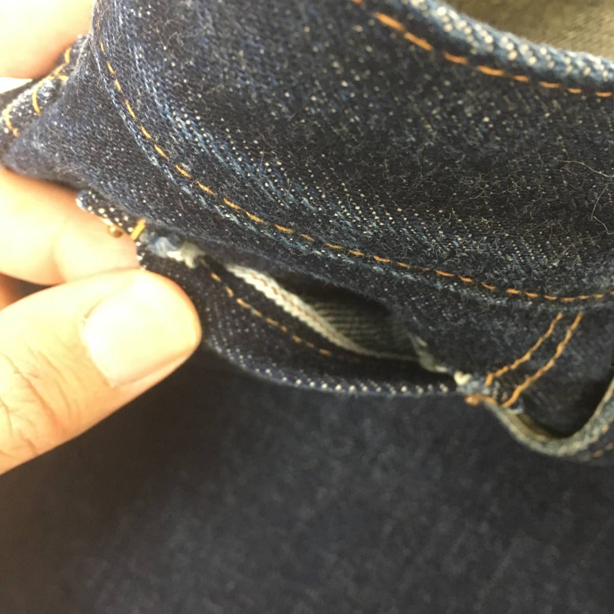 バックポケットの内タグがないため、ドゥニームorシンズか不明です。