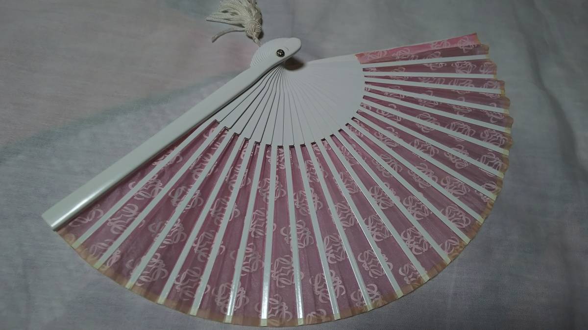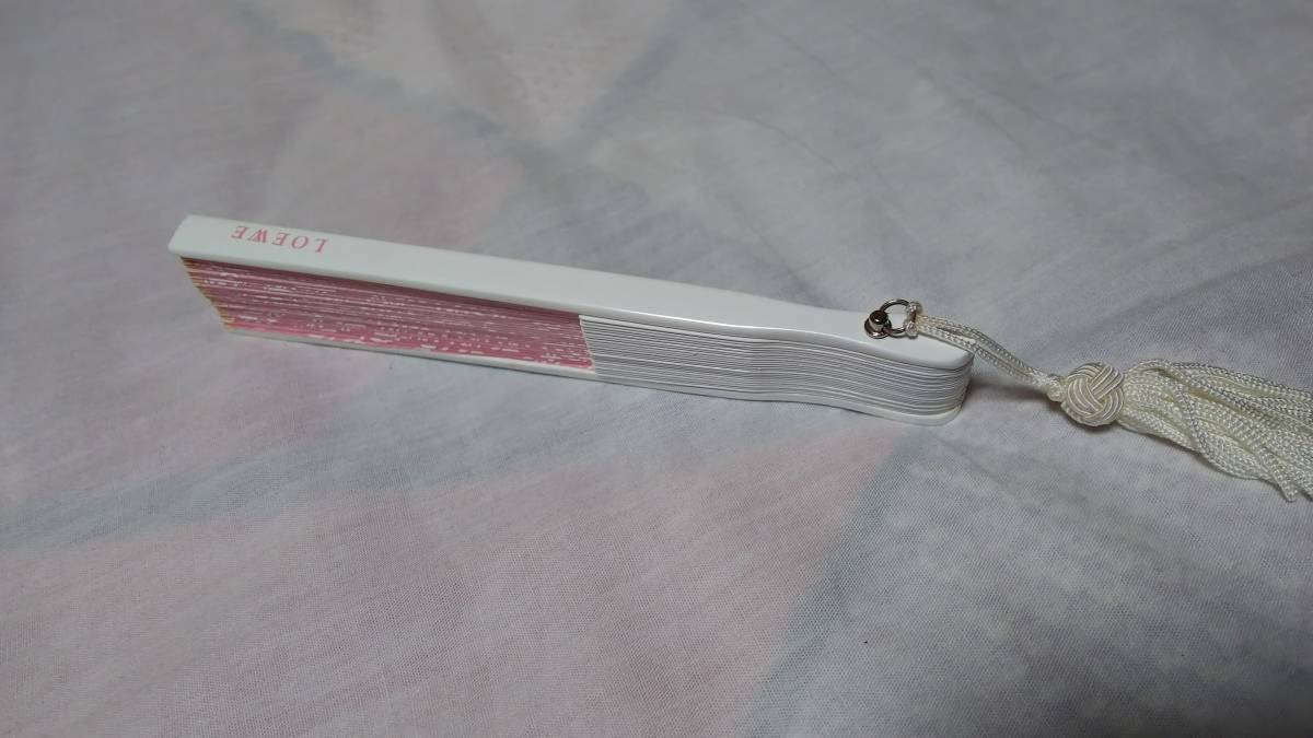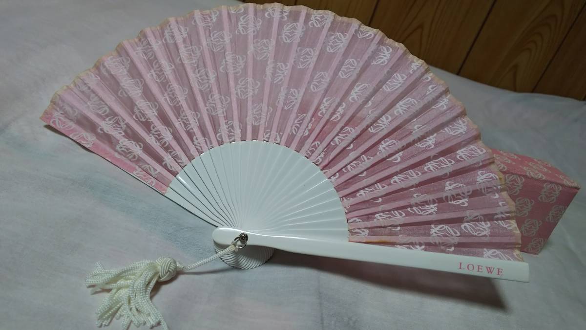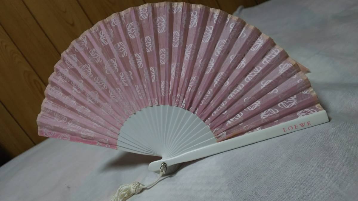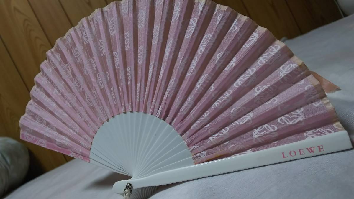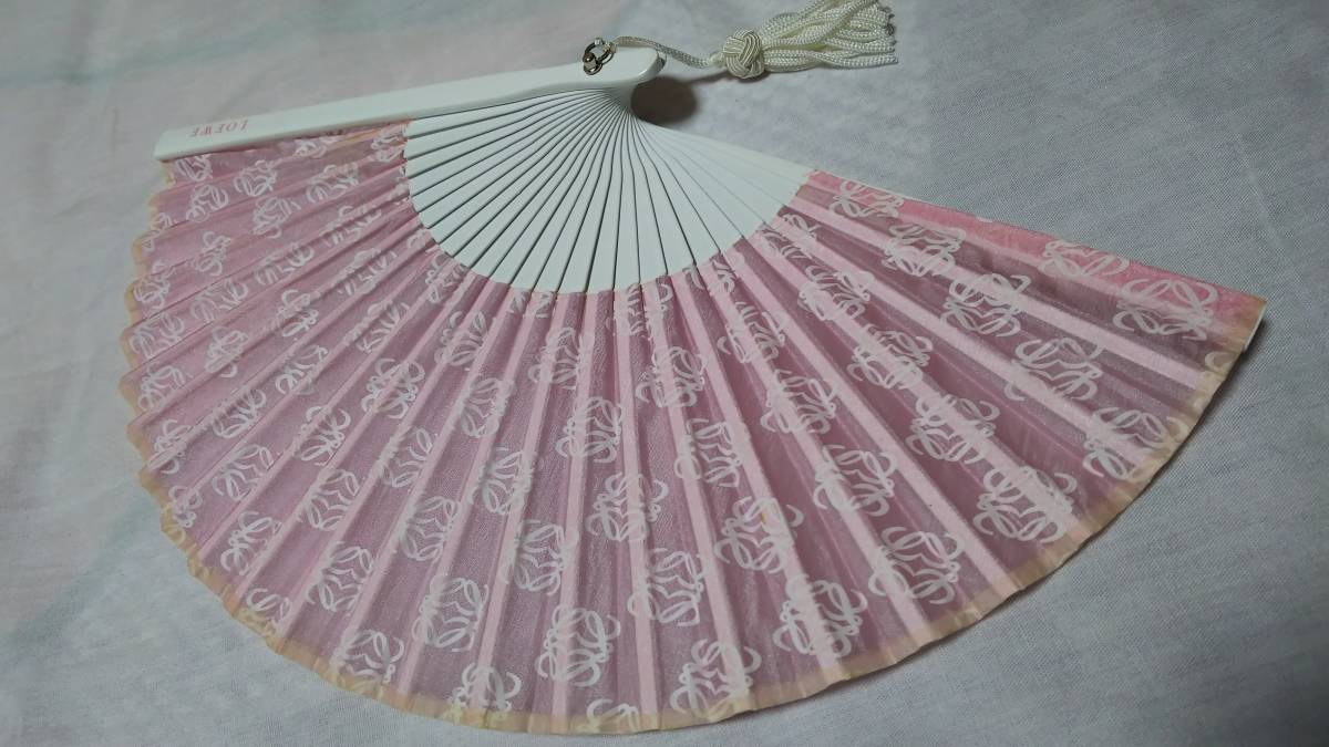正規 レア LOEWEロエベ アマソナ アナグラム ロゴ扇子 ピンク×ホワイト フリンジタッセル装飾 26.5×15cm アバニコ 男女兼用 箱有 うちわ