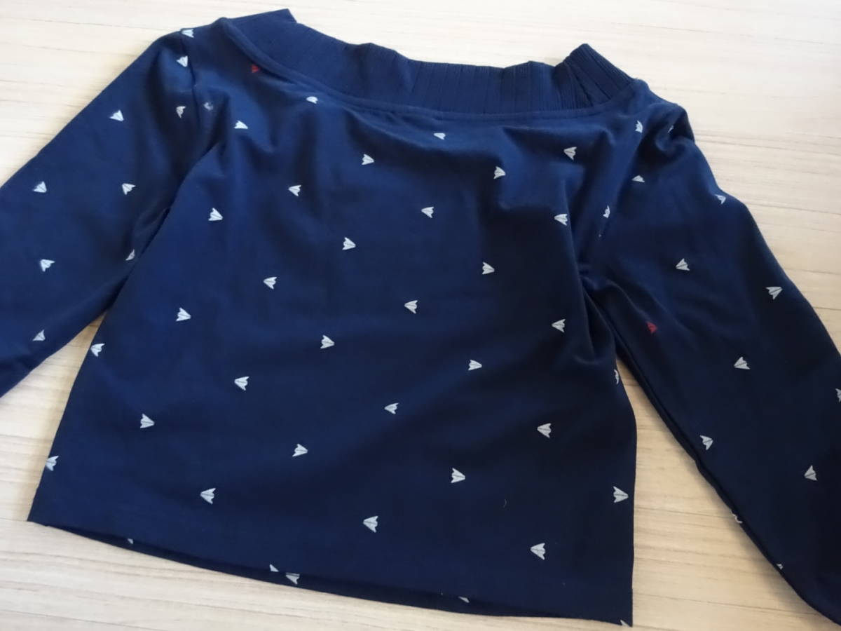スタークレストロゴを散りばめたようなトリコロールカラーのオーリルオーバープリントやワイドなネックライン、長めに設計したスリーブが特徴的な一枚。