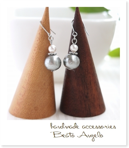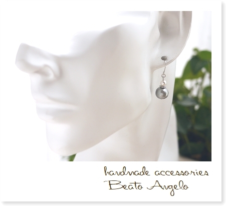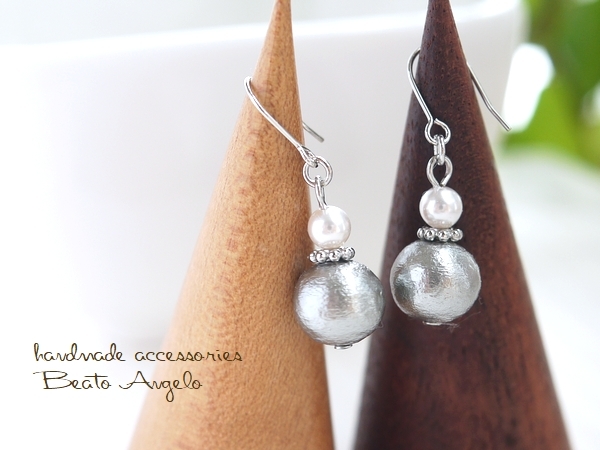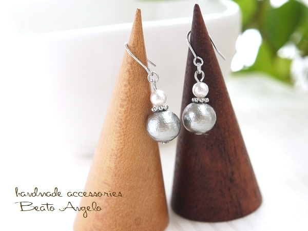 ◆◆+angelo+コットンパールとスワロフスキーパールのピアス(p-184)グレー S 香水瓶 シンプル チタン 樹脂 イヤリング