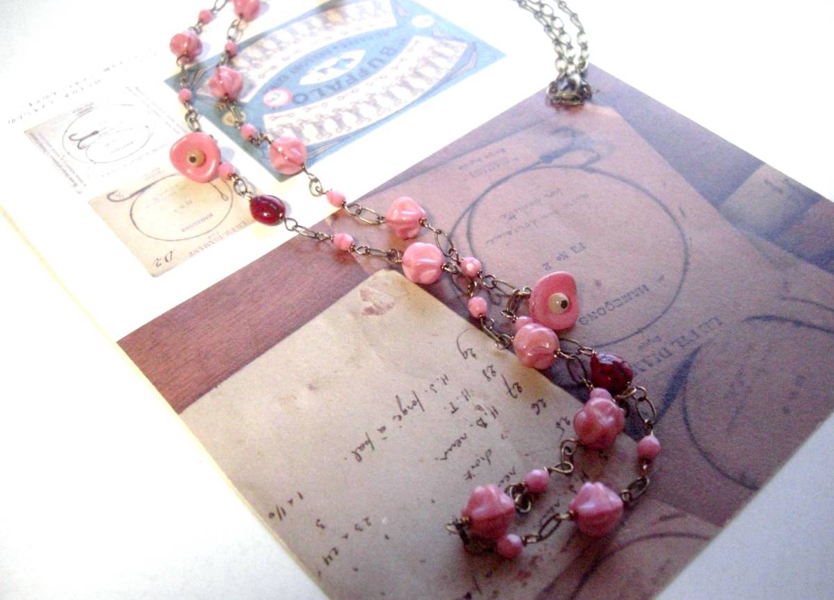 ジゼルのクローゼット・・シリーズです♪甘すぎないピンクを繋いで・・シックなモーヴピンクのチェコビーズのネックレスです♪同じ色のチェコのお花やてんとう虫のチェコビーズを合わせてロマンチックな表情です♪チェコビーズは4ミリから9ミリ位、てんとう虫は7×9ミリ位で す♪長さは全長102センチ位で調節自由です♪2連にされても素敵です♪お揃いのネックレスやブレスレットも出品しています♪シンプルで 飽きのこないいつまでも着けられるデザインを考えて作りました!ハンドメイドをご理解頂いてノークレーム、ノーリターンでお願いします