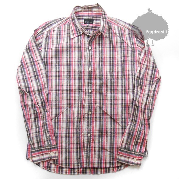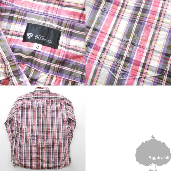 商品名:YGG■タケオキクチ チェック 花柄シャツ ピンク 3 長袖シャツ TAKEO KIKUCHI