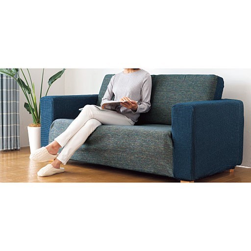 送料無料(北海道・沖縄別途)2人ひじ有用【アウトレット】ズレにくいぴったりフィットソファカバー ネイビー系 ソファーカバー※ラスト1