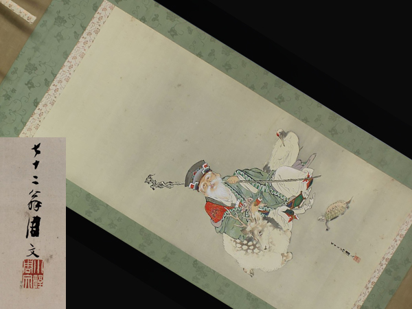 | №130658【真作】小野周文【寿老人】◆絹本◆合箱◆掛軸 | |