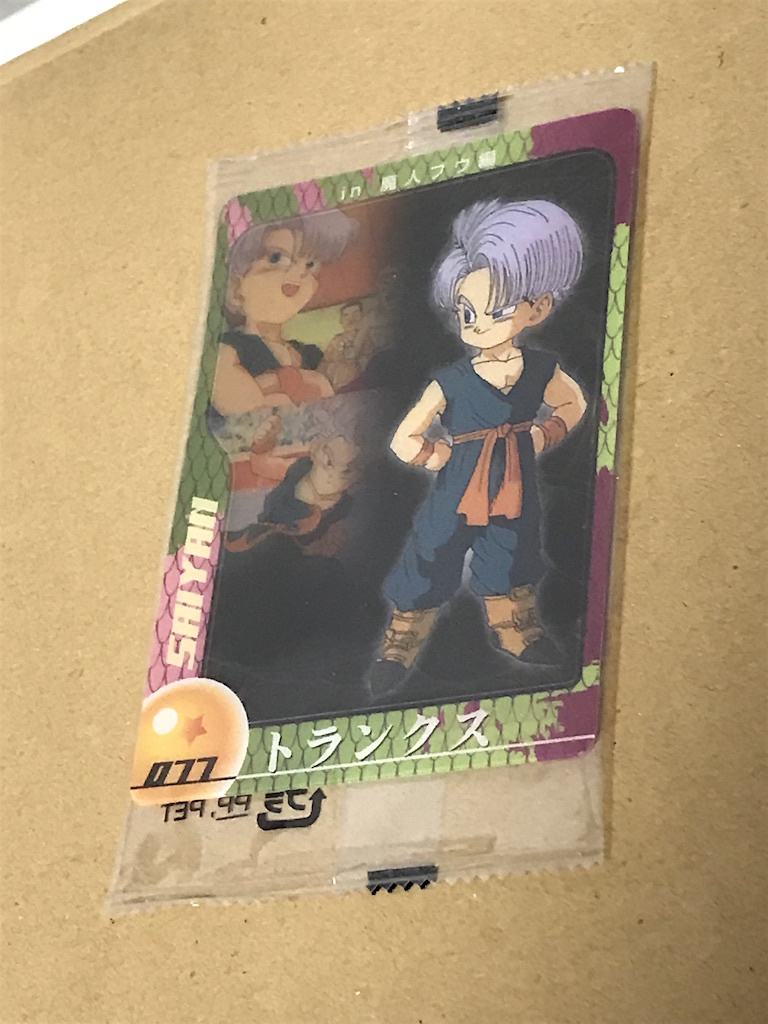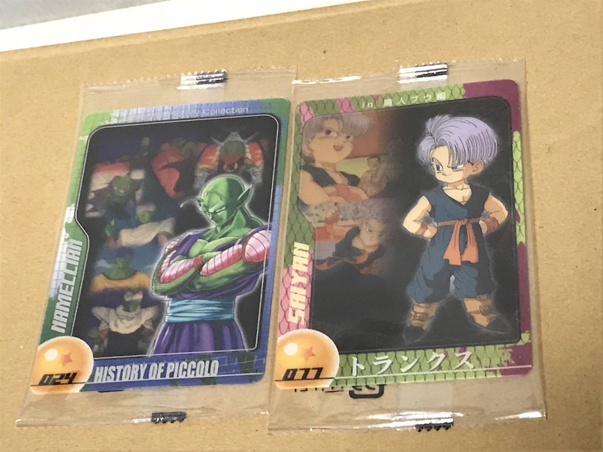 「ドラゴンボールのウエハース商品」に付属していた、 『024 キャラクターヒストリー/ピッコロ』 『077 トランクス/魔人ブウ編』 上記の2種セットになります。 カードのみです。 袋に入ったまま保管していたので、 目だった汚れなどはないと思いますが、 多少の擦れ、キズ、汚れがあるかと思いますので神経質な方は入札をお控え下さい。 宜しくお願い致します。 |
