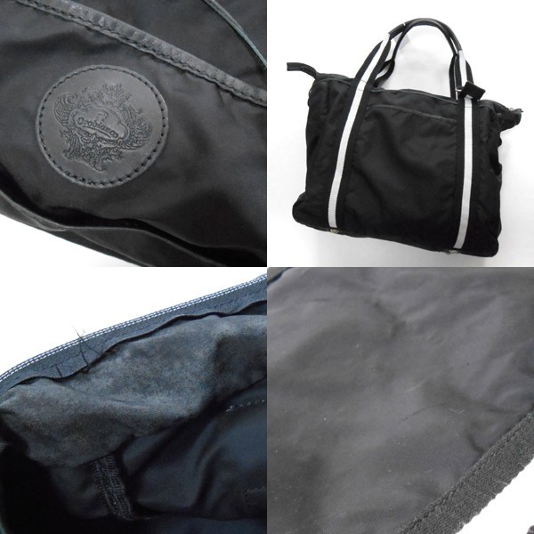 YGG★Orobianco オロビアンコ ショルダーバッグ トートバッグ 黒 ストライプ ヨゴレあり ブラック ナイロン