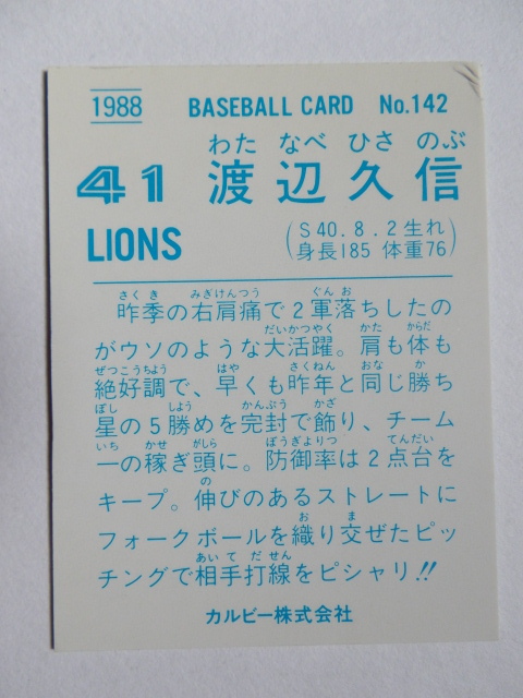 カルビー プロ野球カード 1988 No.142 渡辺久信 西武ライオンズ