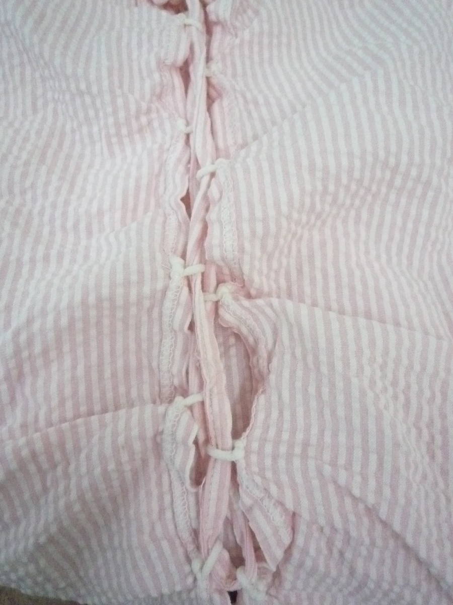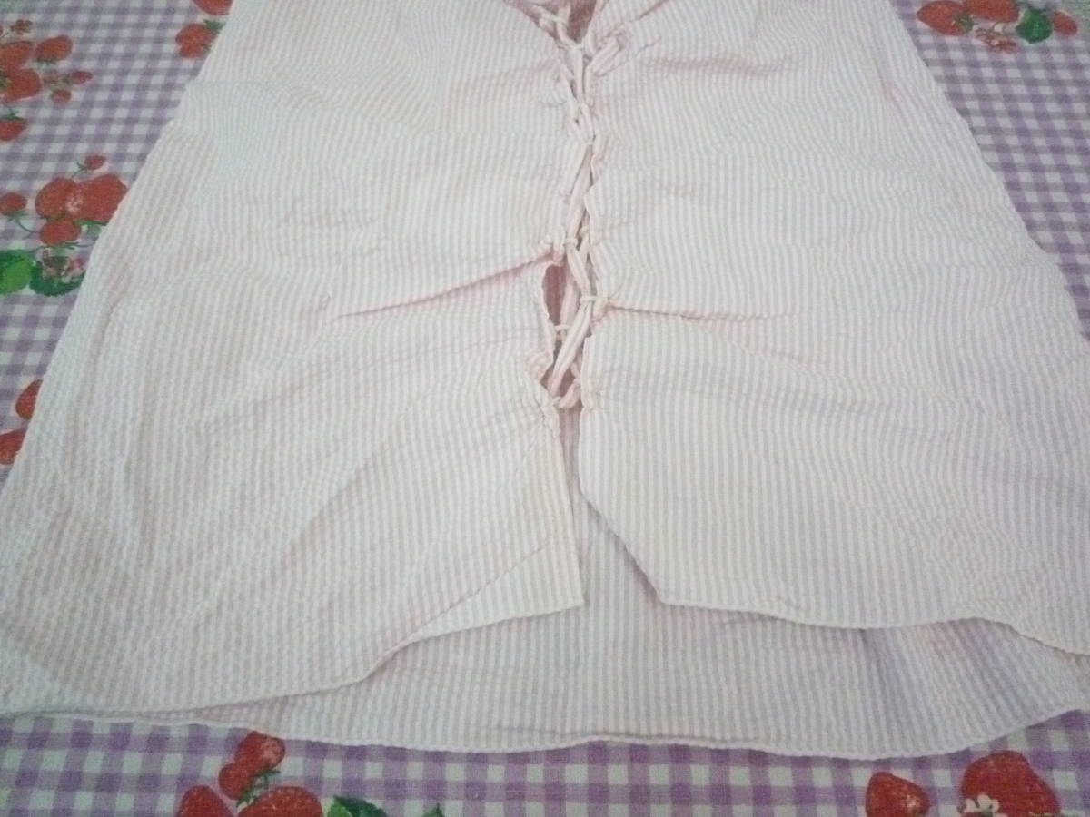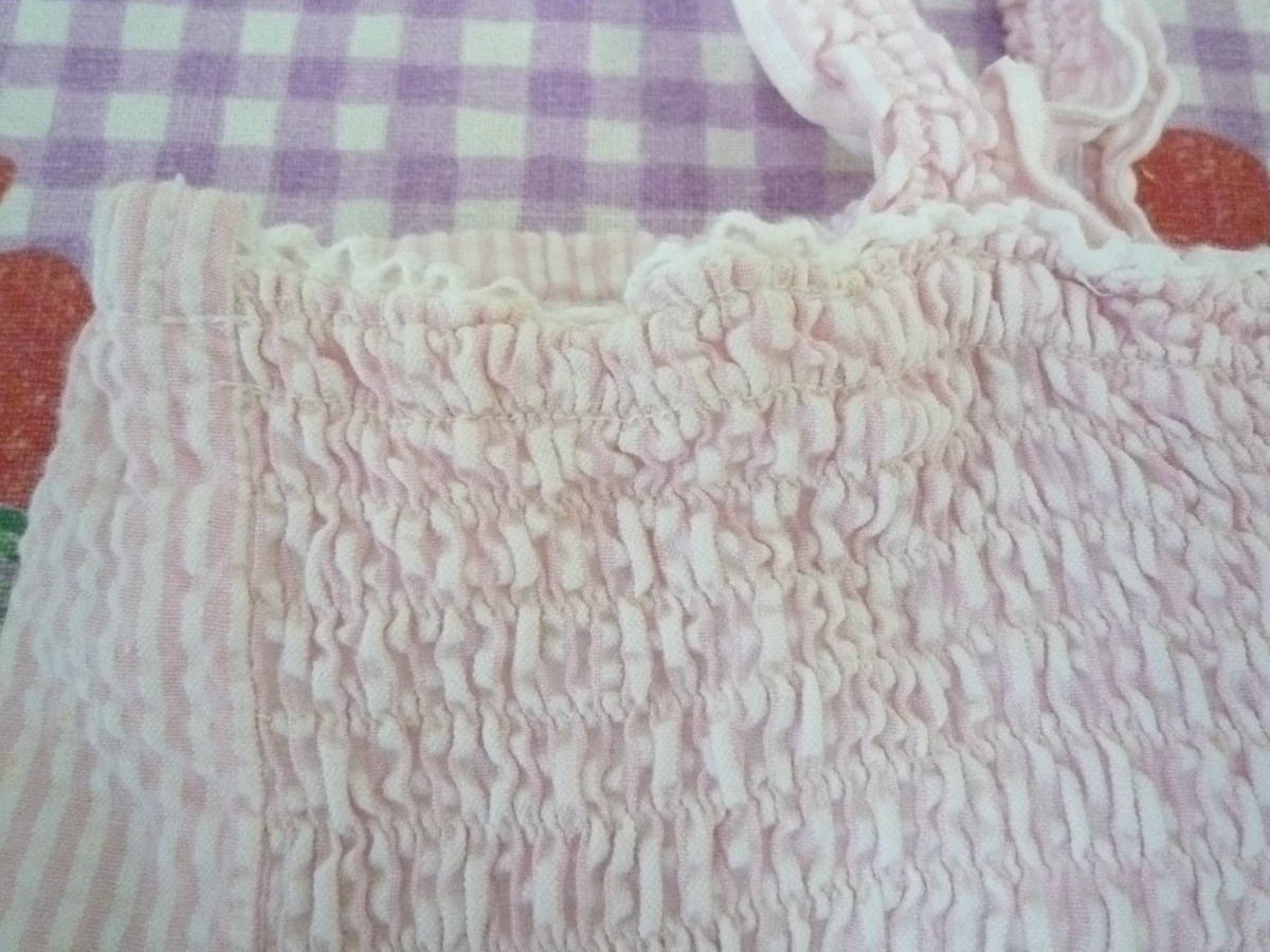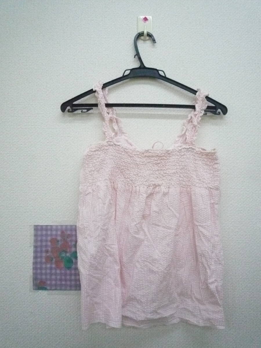 ★ C・O・L・Z・A かわいい キャミソール トップス シャーリング 編み上げ ストライプ シワ加工 ピンク <M> 綿100%