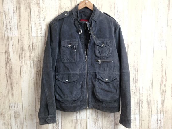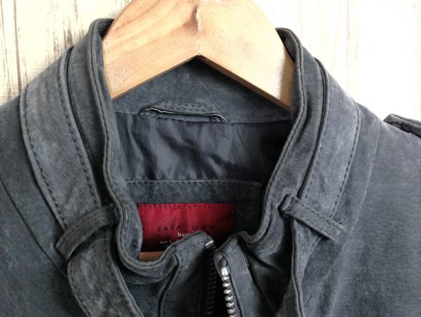 激シブ・ZARA MAN/ザラマン 革 レザー M-65フィールドジャケット グレー L ライダース 値下げ