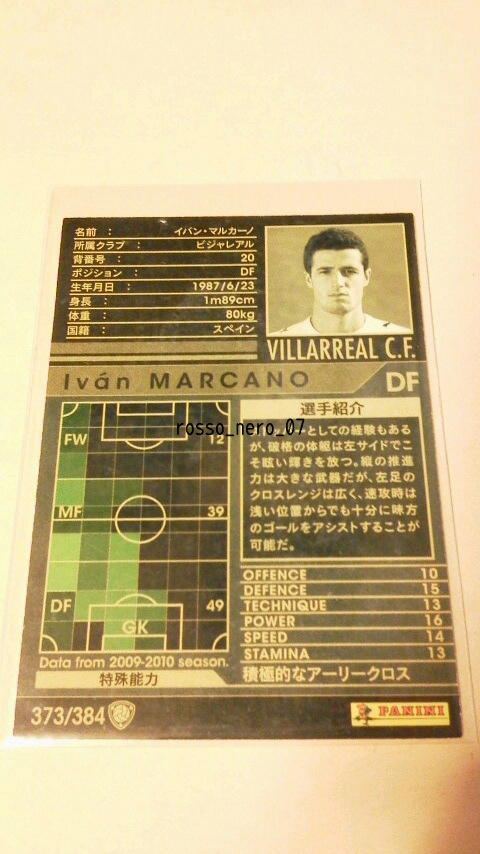 ☆WCCF2009-2010☆09-10☆373☆白☆イバン・マルカーノ☆ビジャレアル☆Ivan Marcano☆Villarreal C.F.☆