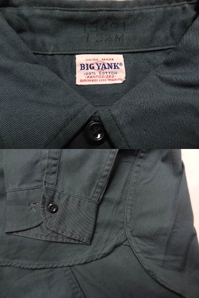 ビンテージ BIGYANK ビッグヤンク 希少 50S~60S モスグリーン カラー ユニオンメイド ワーク シャツ マチ付 緑 サイズ 15 M レア コットン