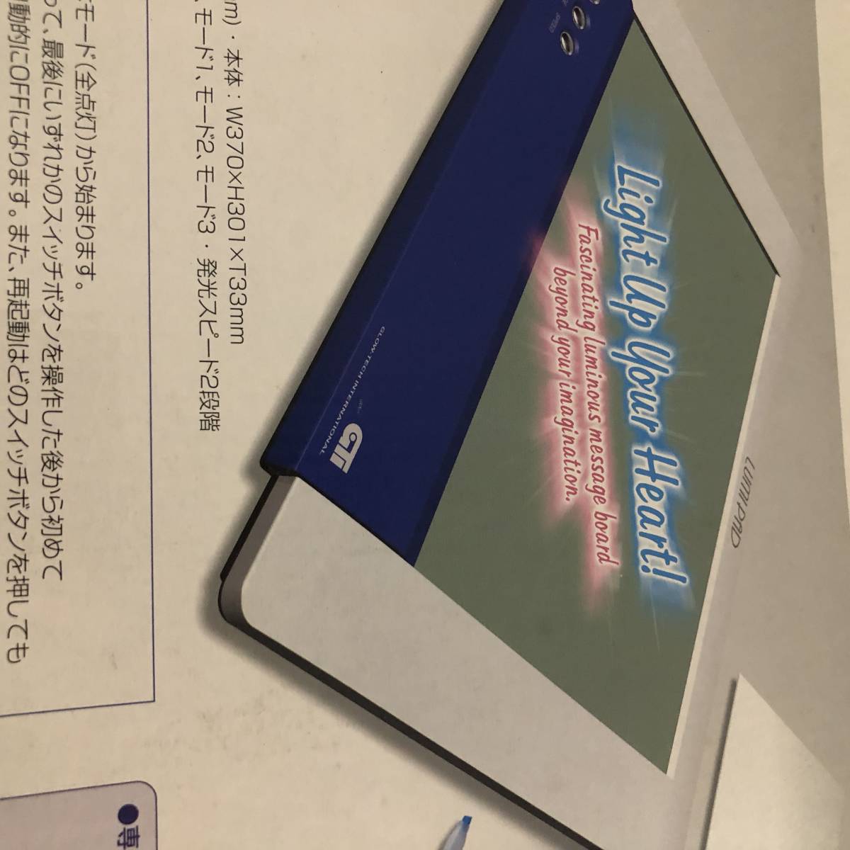 自由に手書きした文字や絵が光ます、点滅させることができます。何度も書き直して使えるので便利です。おすすめメニューなどアピールしたいことがお客様に効果的に伝わります。本体カラーは画像のパープルになります。電気で稼働いたします。ACアダプターも使えるようですが別売になるです。サイズはW370xH301xT33mmです。発送はヤマトの着払いになります。