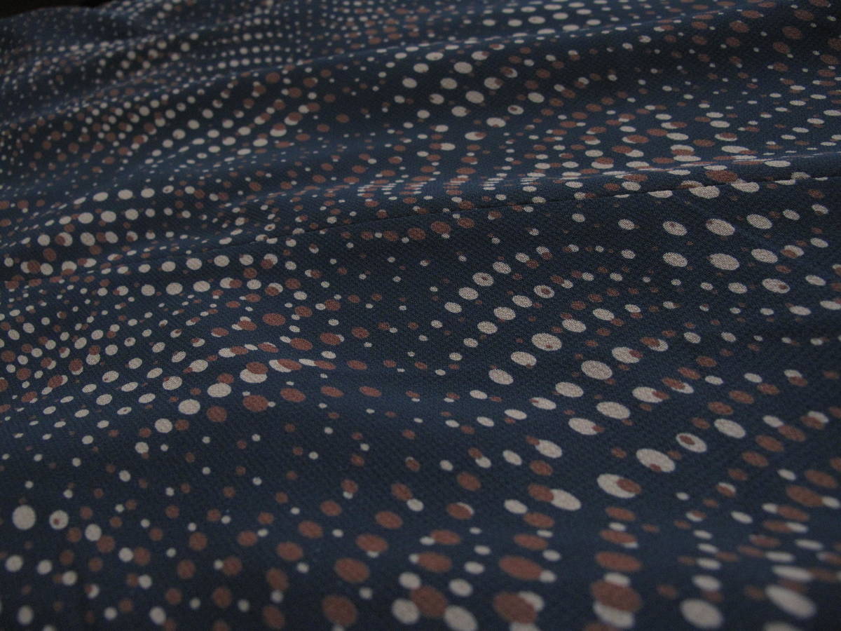 表示にはグレー系と記載されていますが、黒っぽい生地に、茶色とベージュの楕円形の水玉模様が入った大人っぽいセミフレアースカートです。