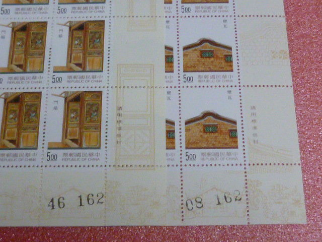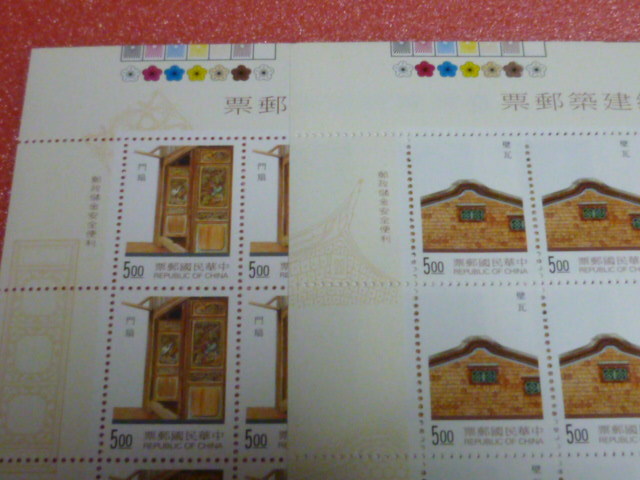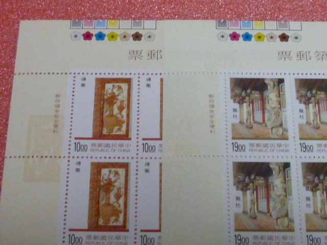 ☆№42 台湾切手 1997年 4.9 T368 伝統建築 4種完 20面シート 未使用NH