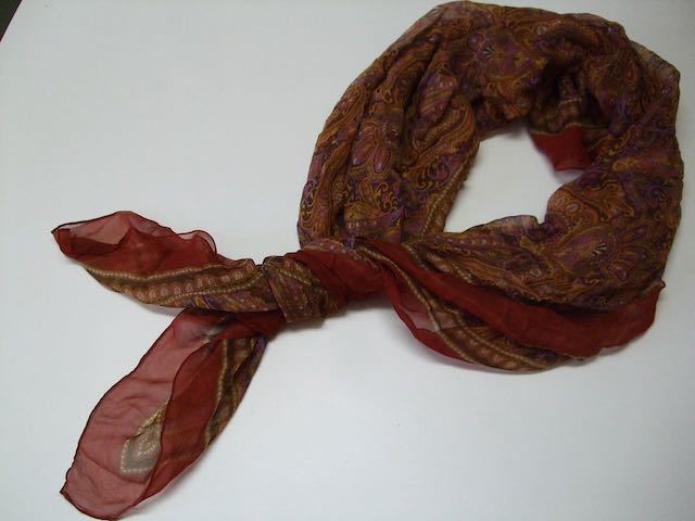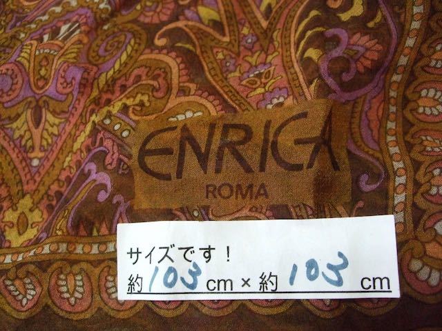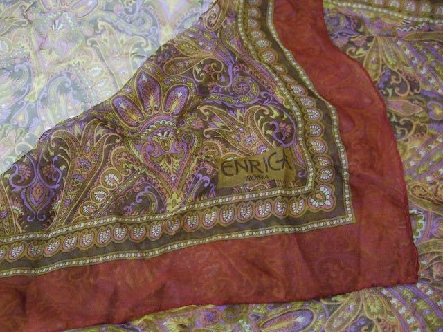 (^_^)良品/超大判スカーフ/ENRICA/エンリカ/茶色/紫/ペイズリー柄系/O5