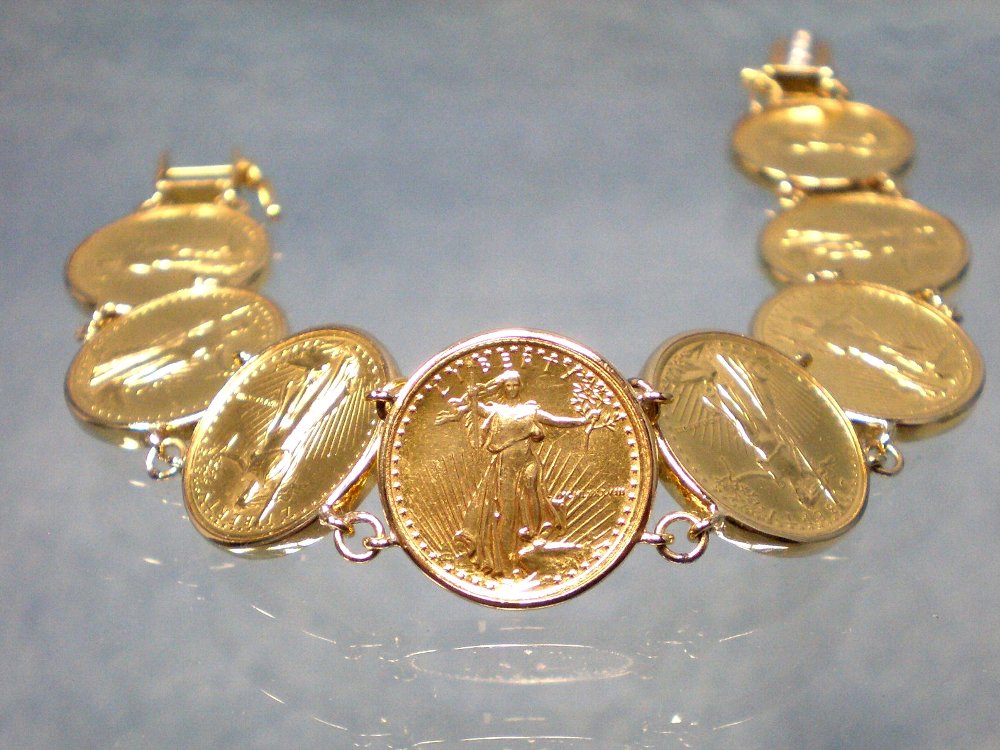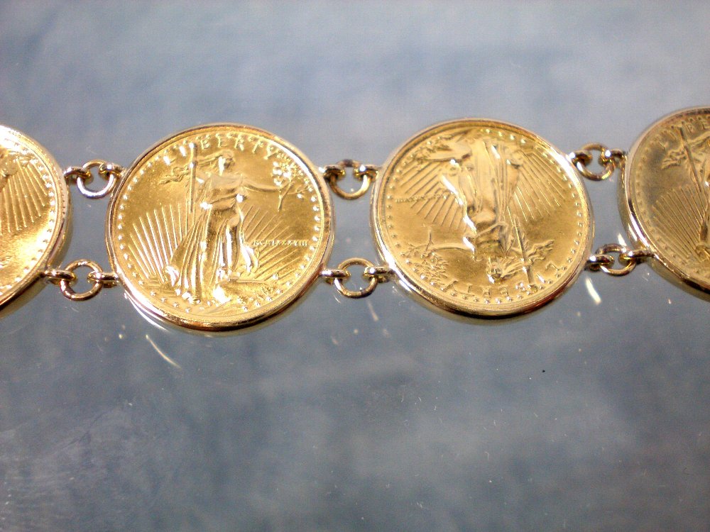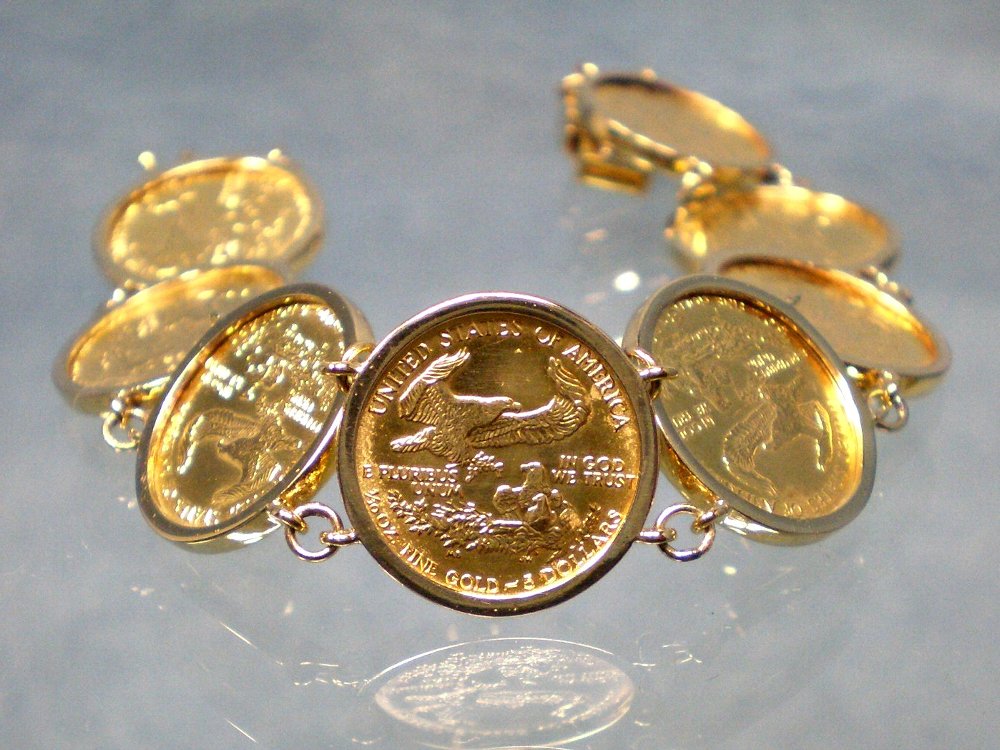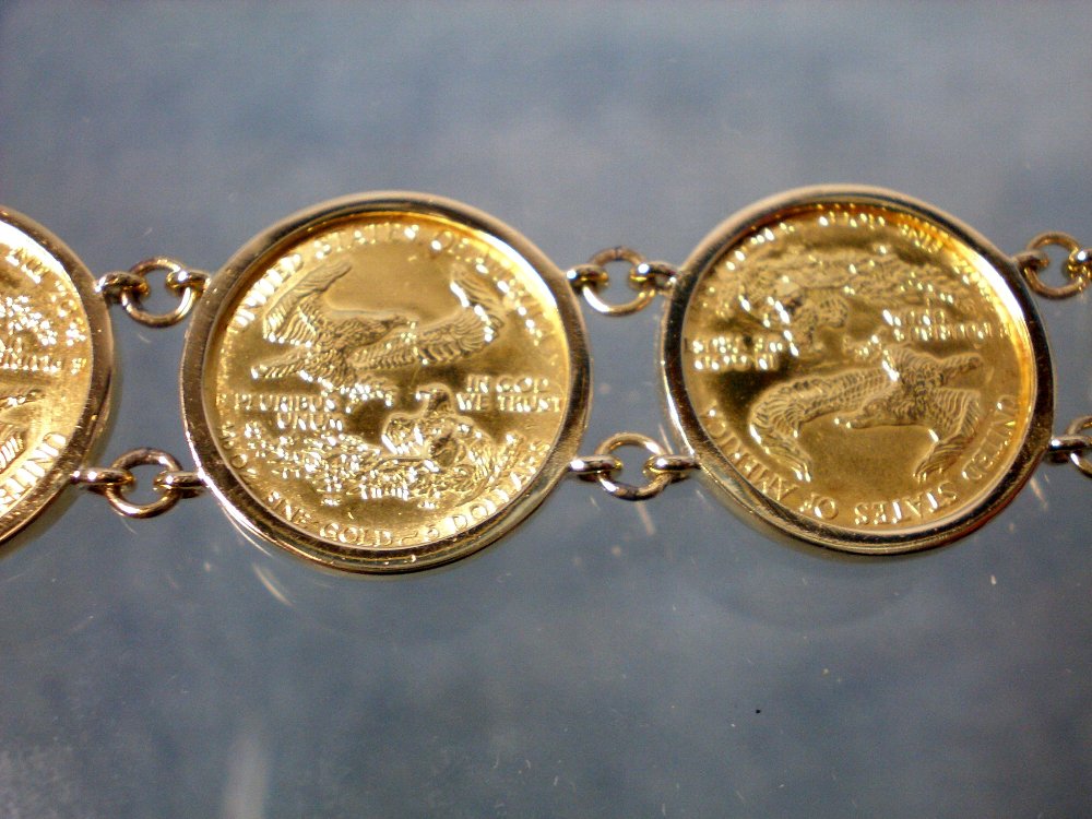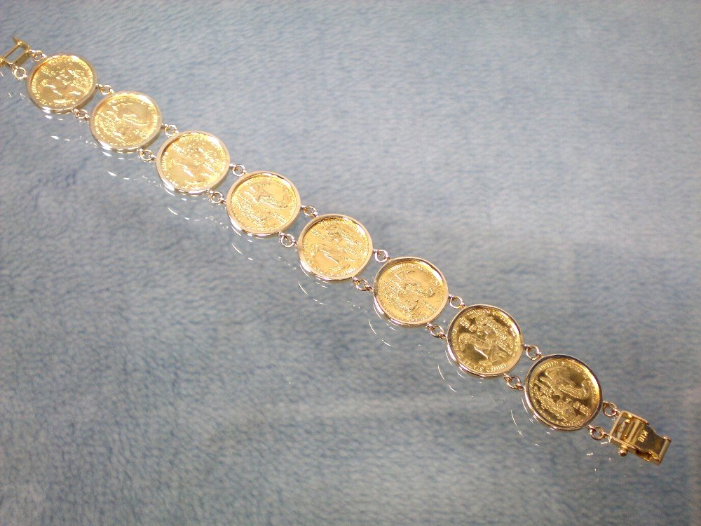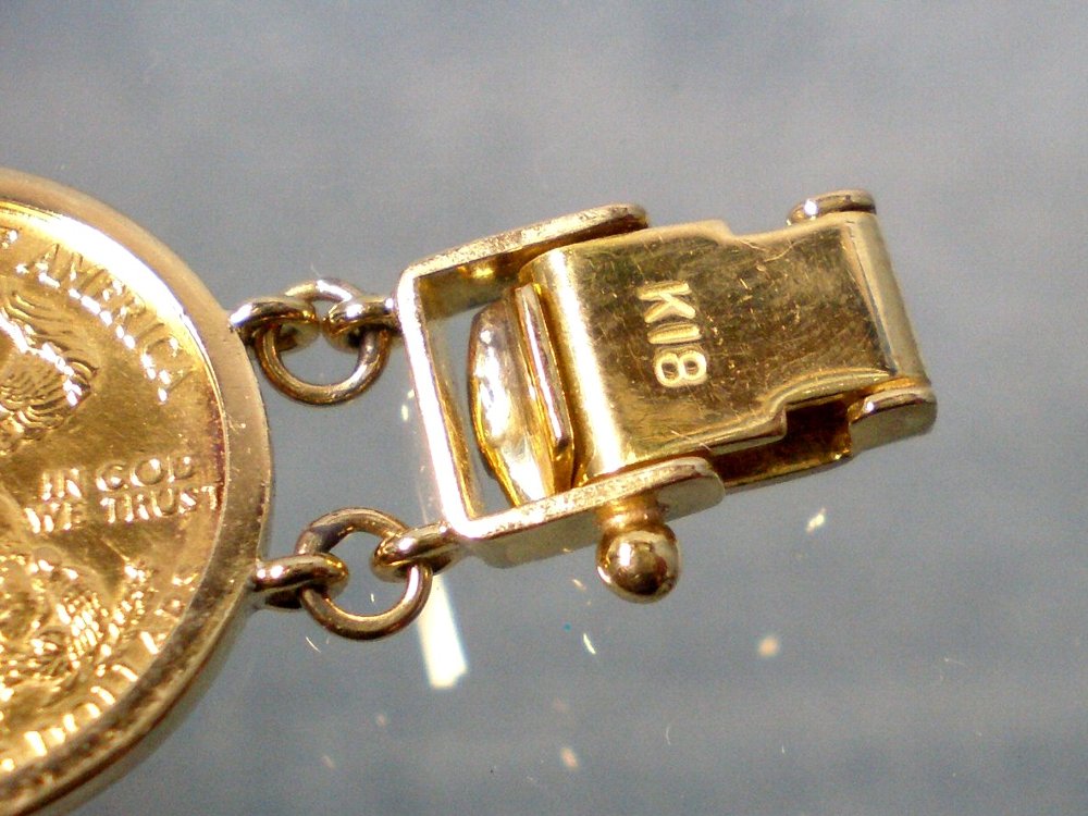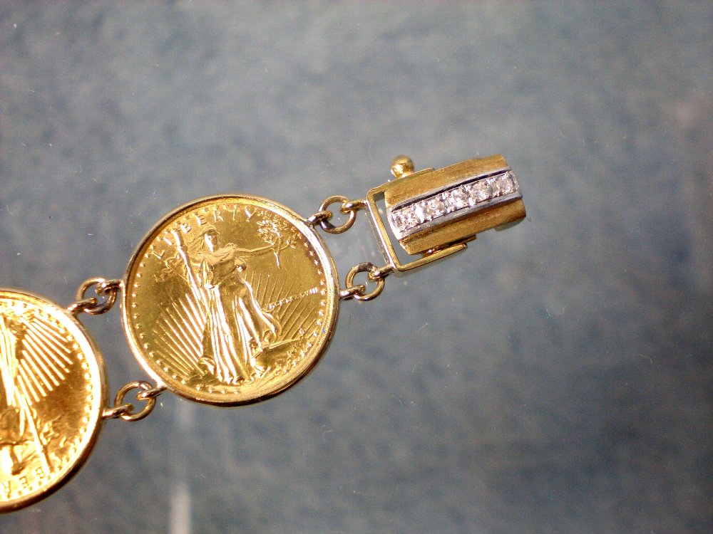1/10オンスイーグル金貨8枚を繋いだデザインで留め金の部分に5個のダイヤモンドが入っ