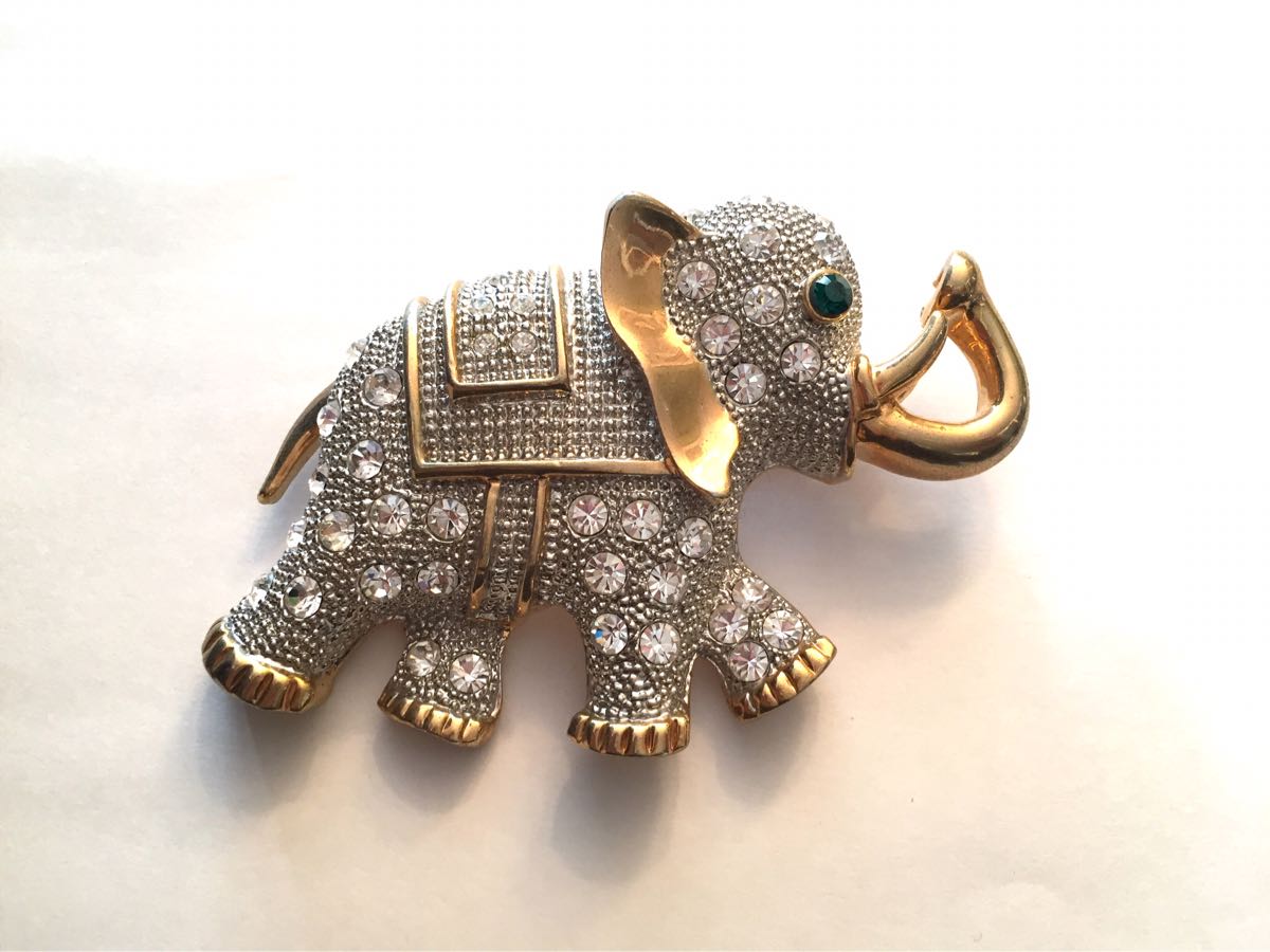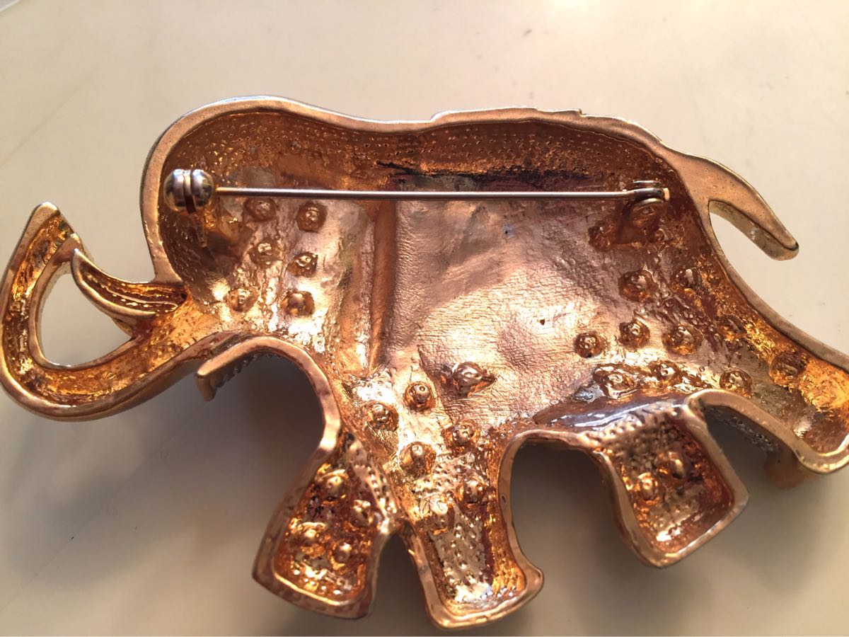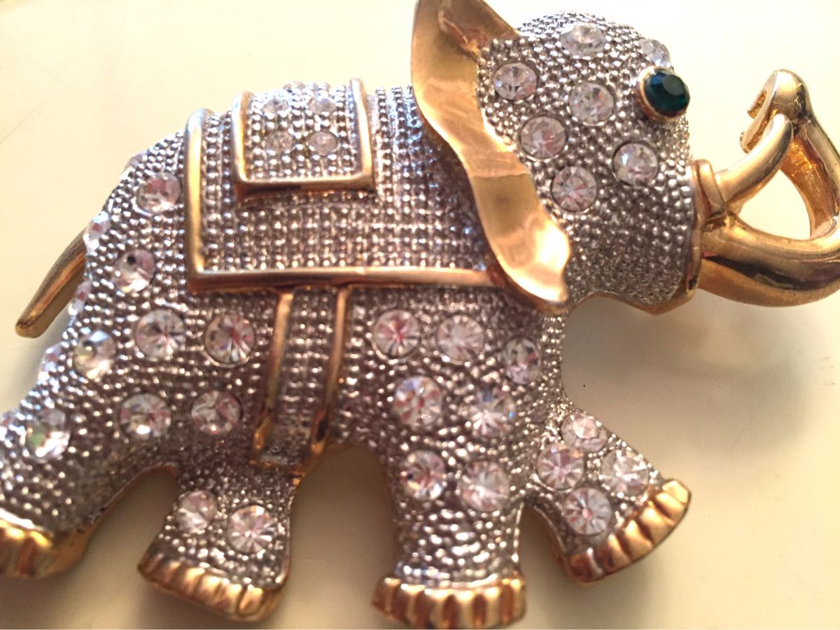 ラインストーンがあしらわれた象のブローチはインパクトあります