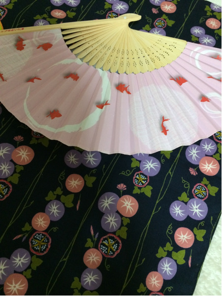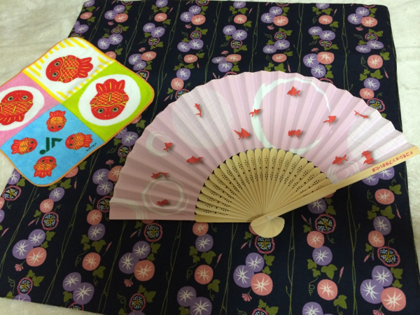 とても可愛い、朝顔柄綿製小風呂敷兼大判ハンカチ(約50cm角)&ドコモ金魚柄扇子(幅約37丈21cm)cm)&JAの懐かしい金魚柄綿100%タオルハンカチ(約20cm角)、全て未使用のお品です!新品ではありませんので、詳細はご了承ください!